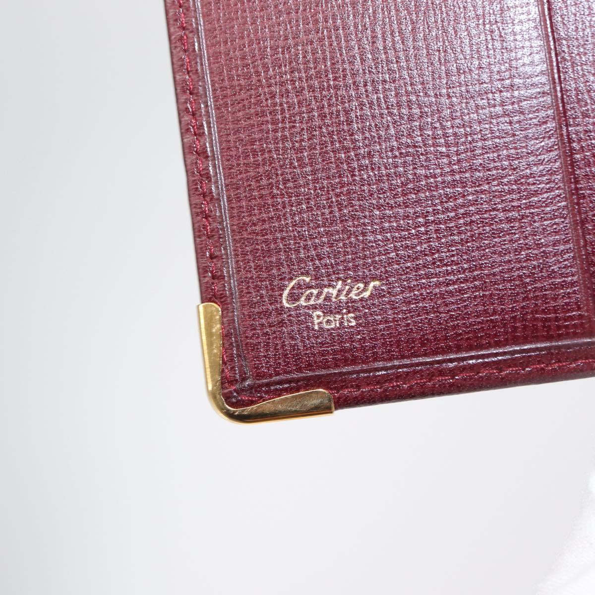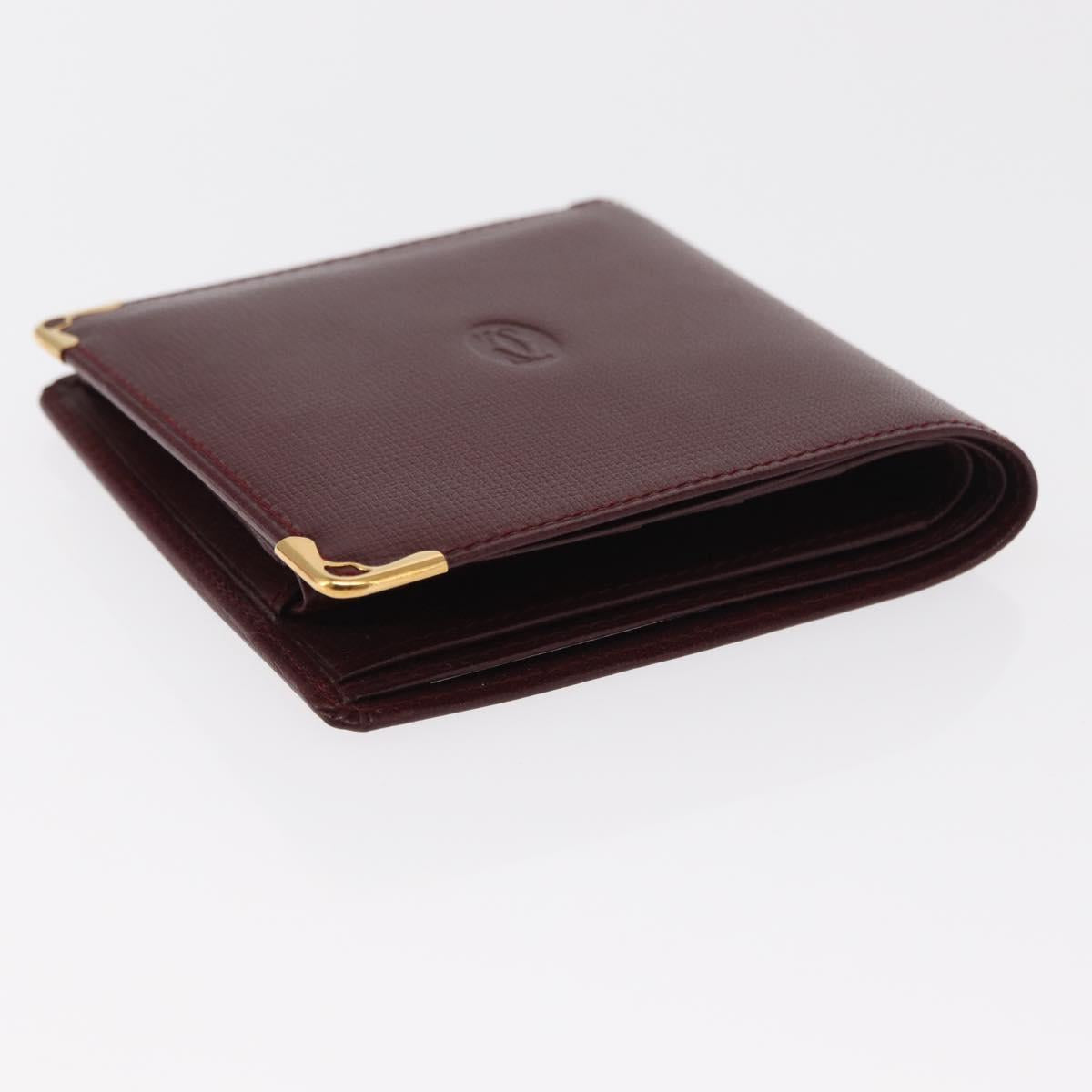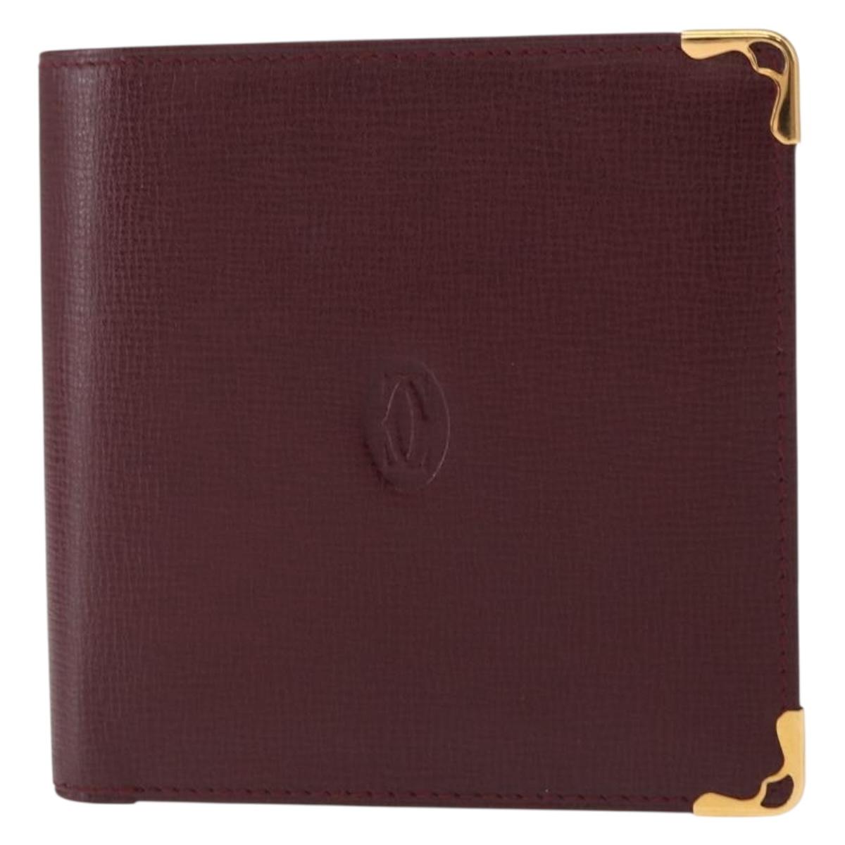 CARTIER Must Line Bifold Wallet Leather Bordeaux Gold Auth bs32096