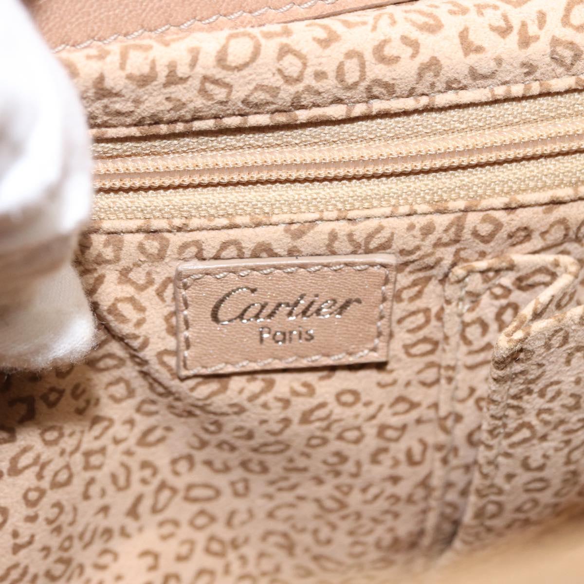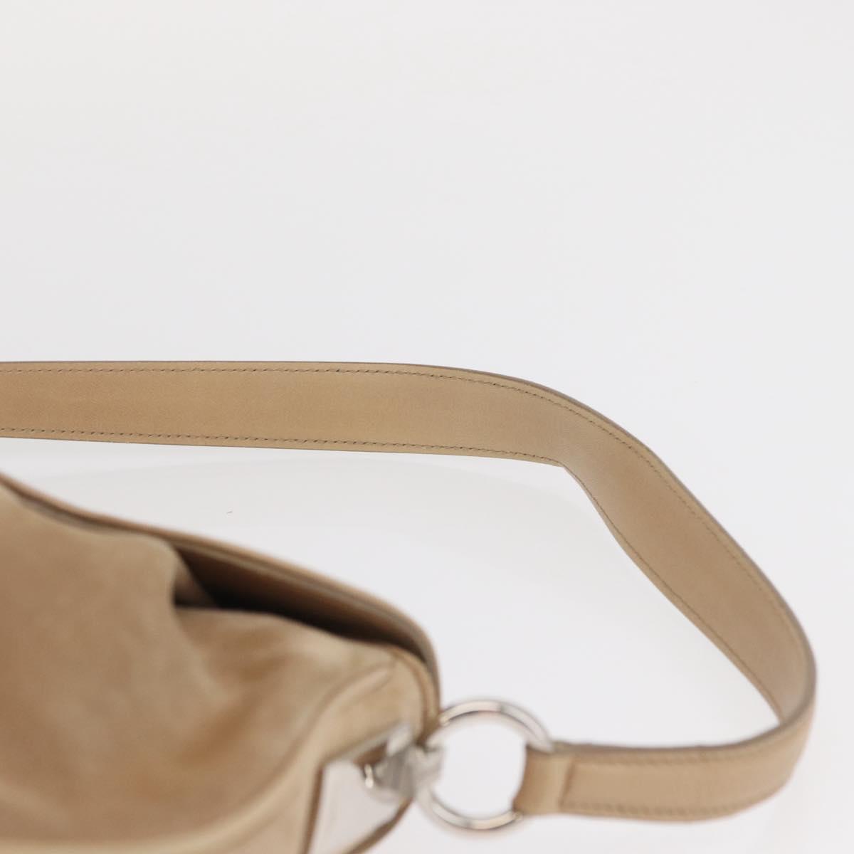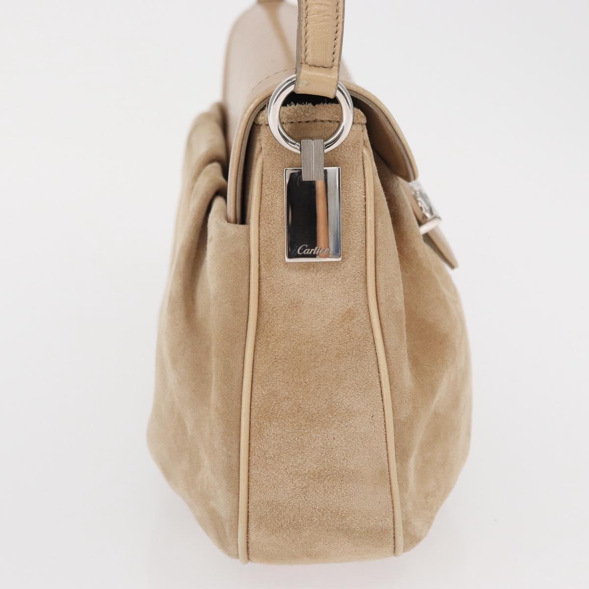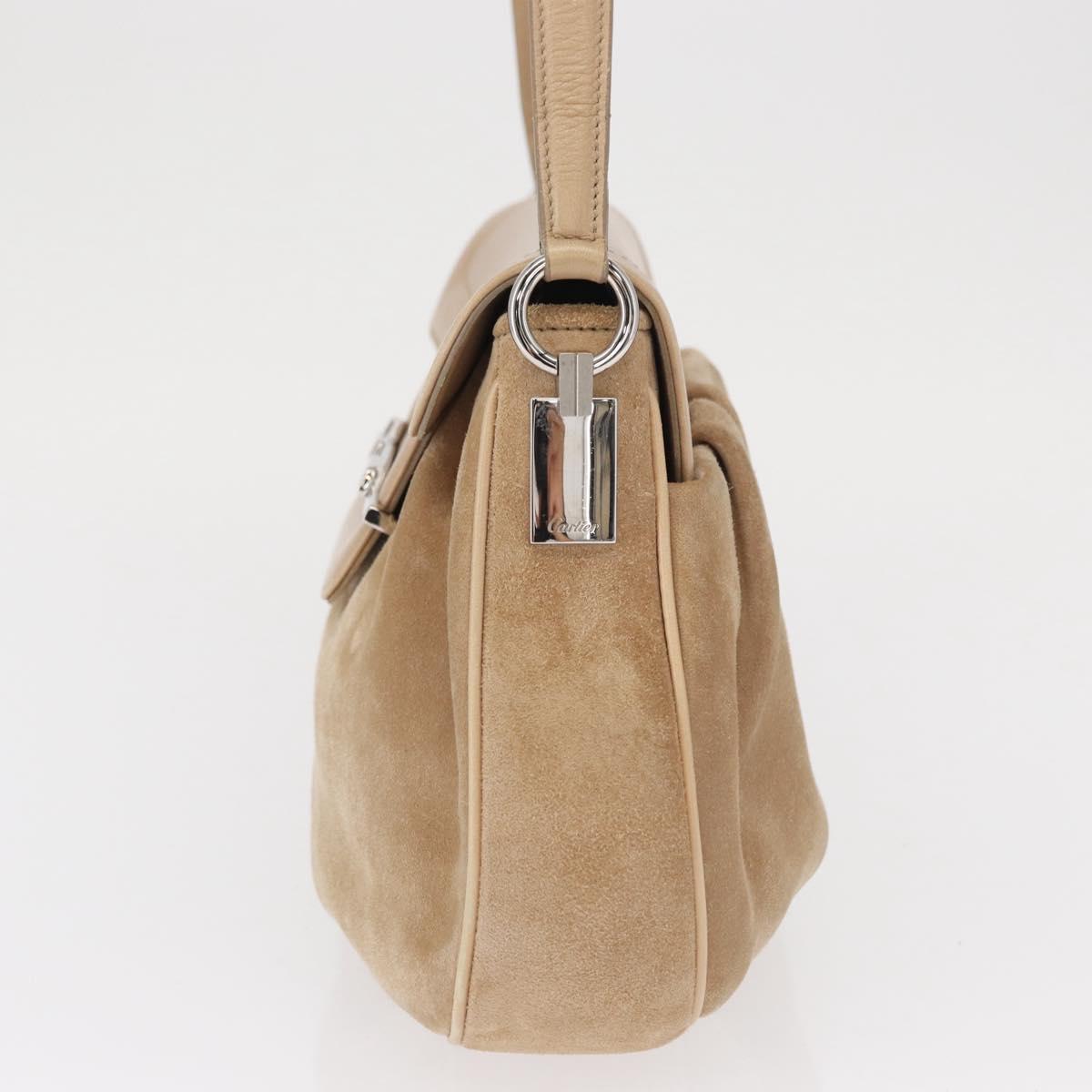 CARTIER Shoulder Bag Suede Beige Silver Auth SW1932