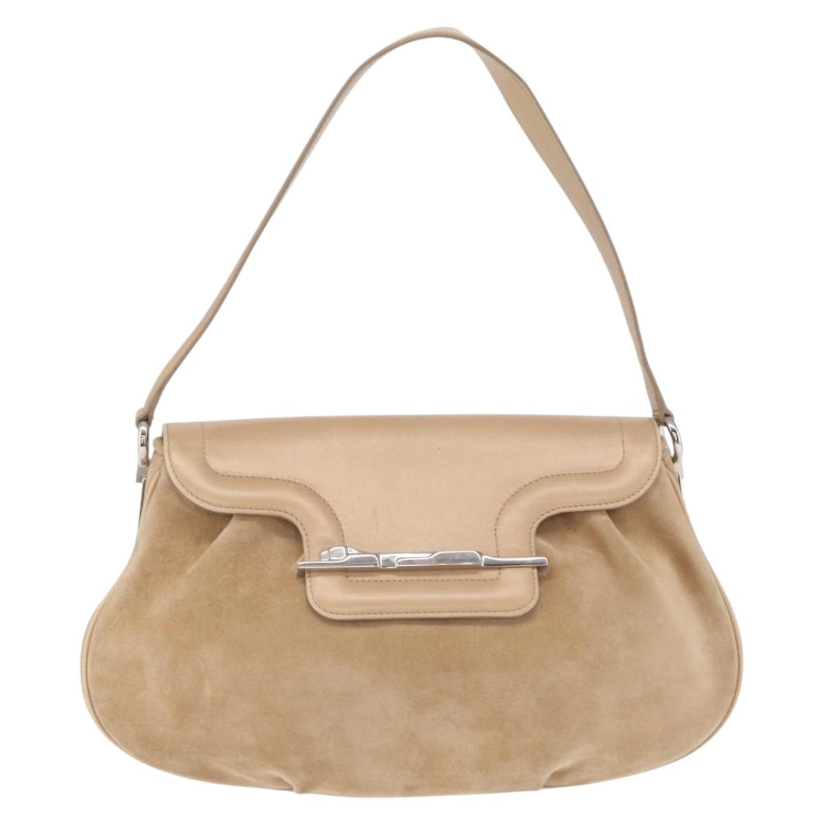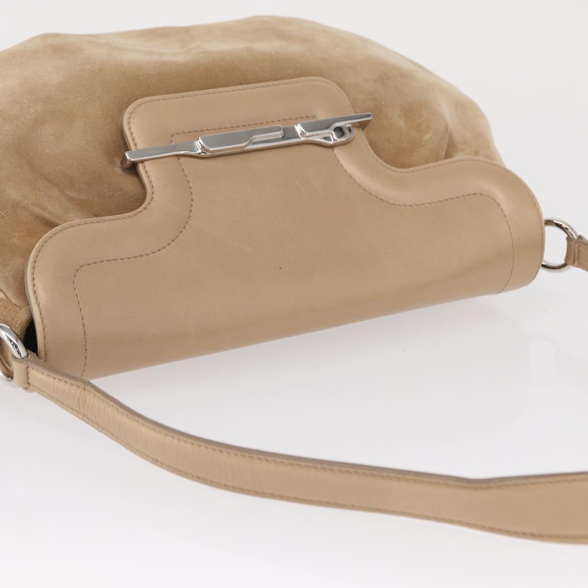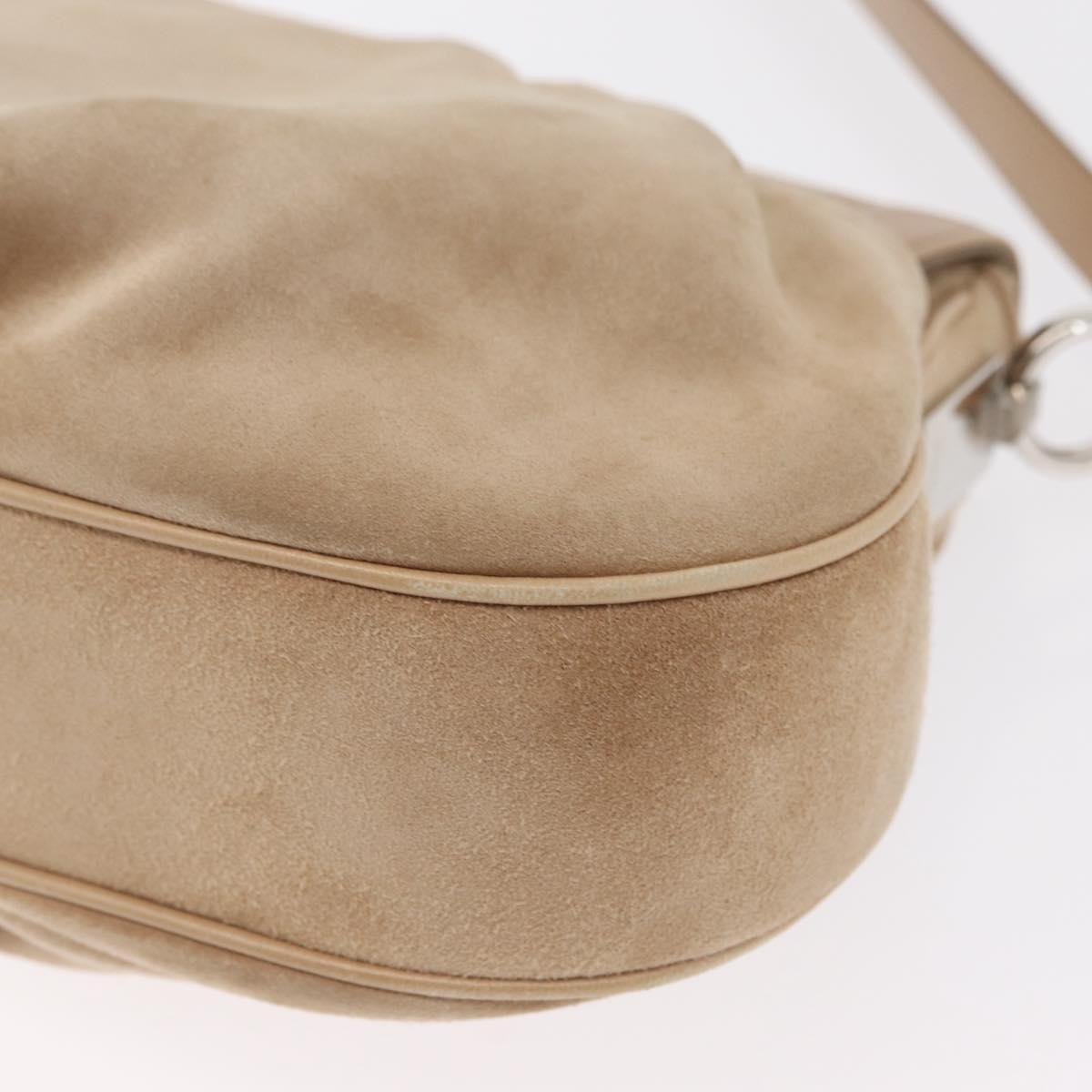 CARTIER Shoulder Bag Suede Beige Silver Auth SW1932