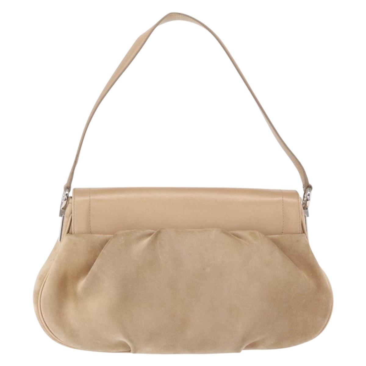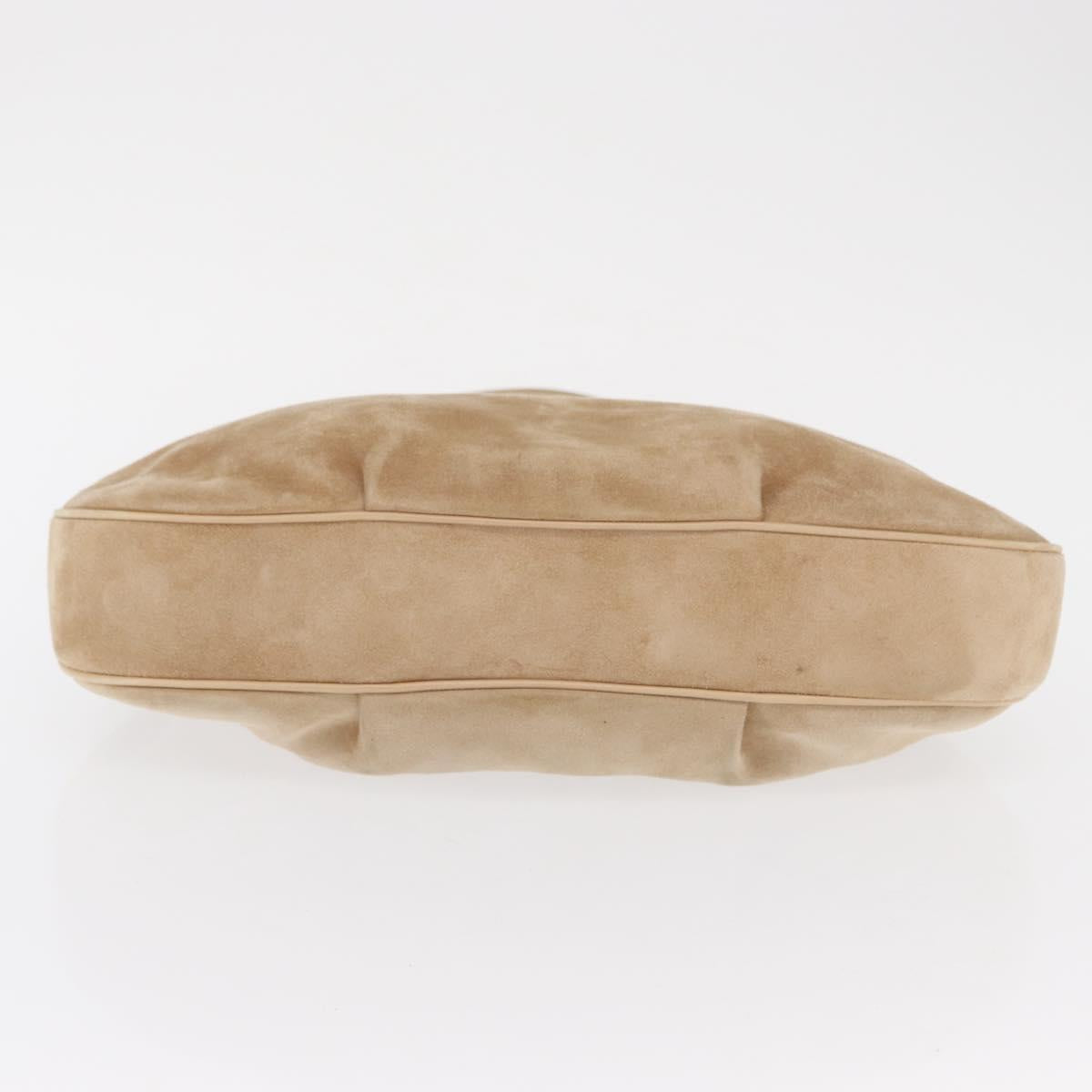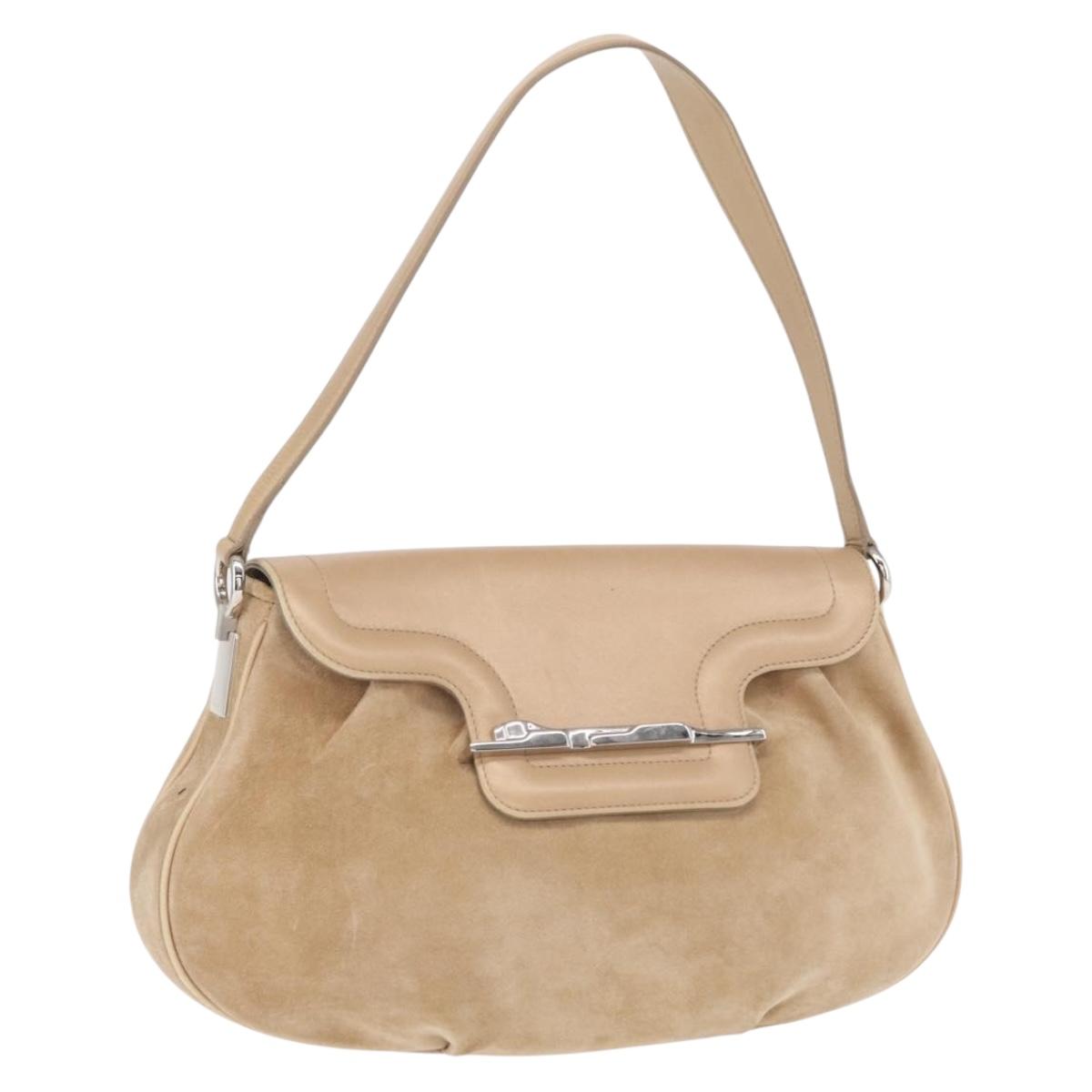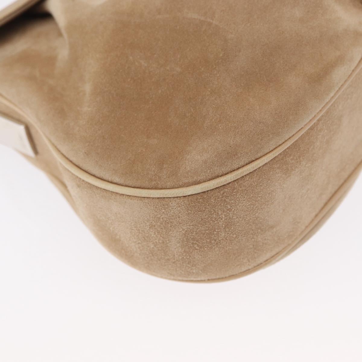 CARTIER Shoulder Bag Suede Beige Silver Auth SW1932