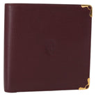 CARTIER Must Line Bifold Wallet Leather Bordeaux Gold Auth bs32096