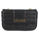 CELINE Chain Shoulder Bag Leather Black Gold Auth nb466M
