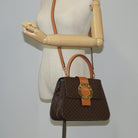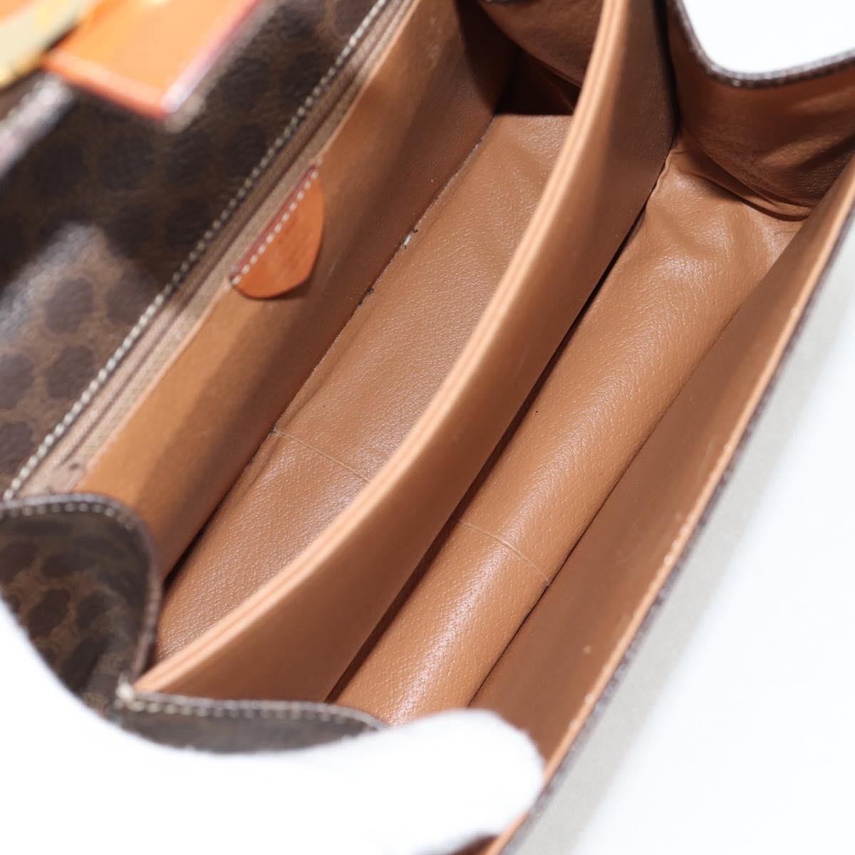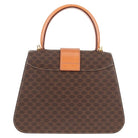 CELINE Circle Macadam Canvas Hand Bag PVC Leather 2way Brown Gold Auth 122270AV
