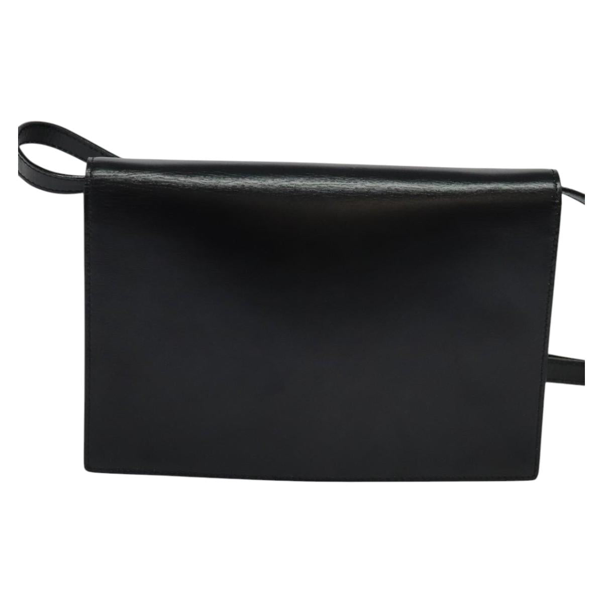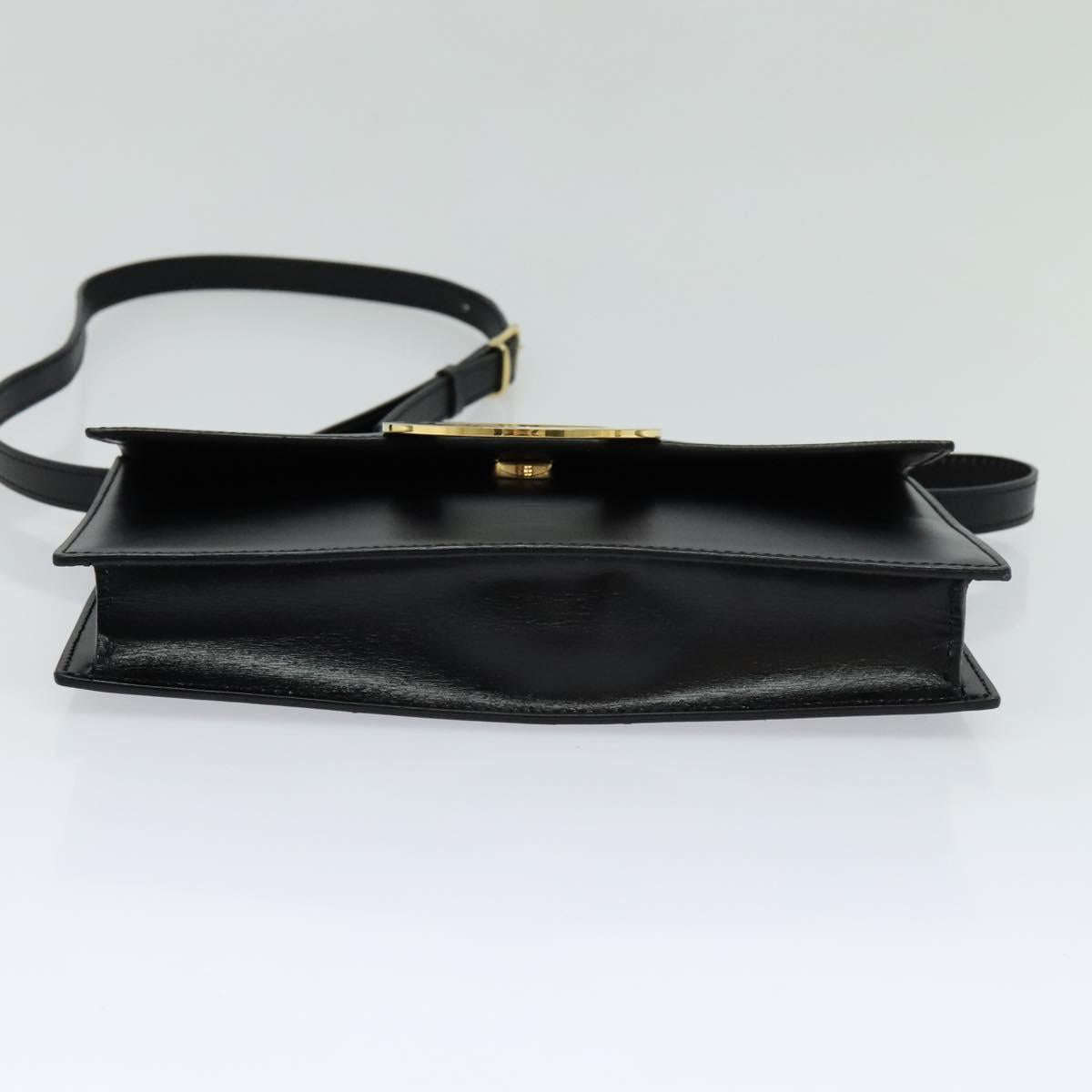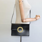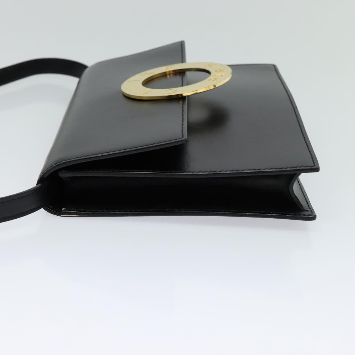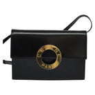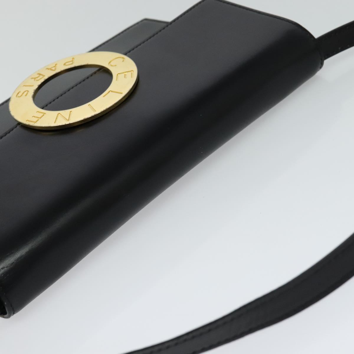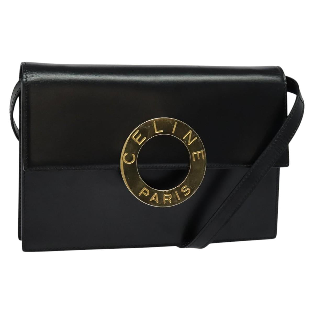 CELINE Circle Shoulder Bag Leather Black Gold Auth mr1090V
