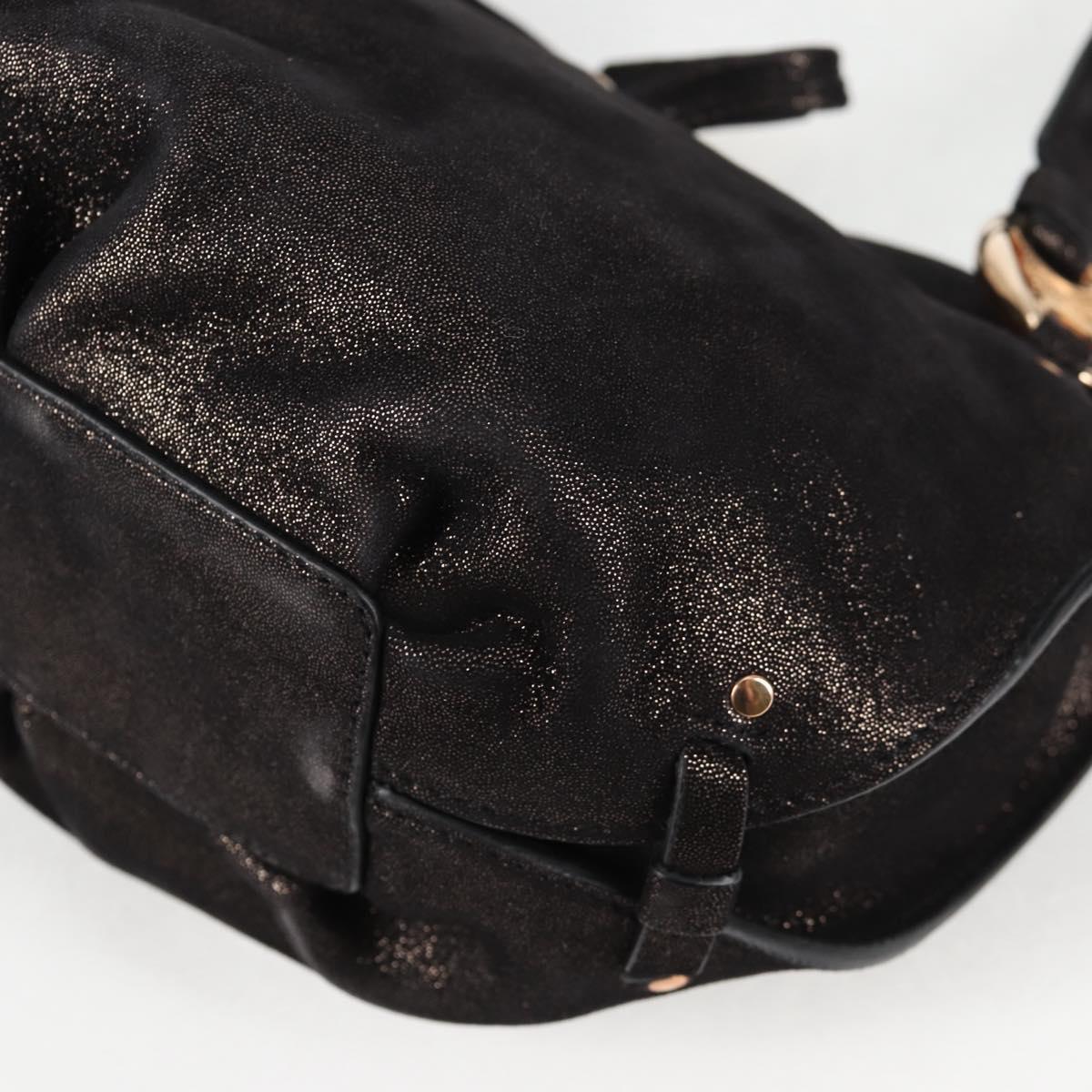 CELINE Hand Bag Leather Black Gold Auth 122142AV