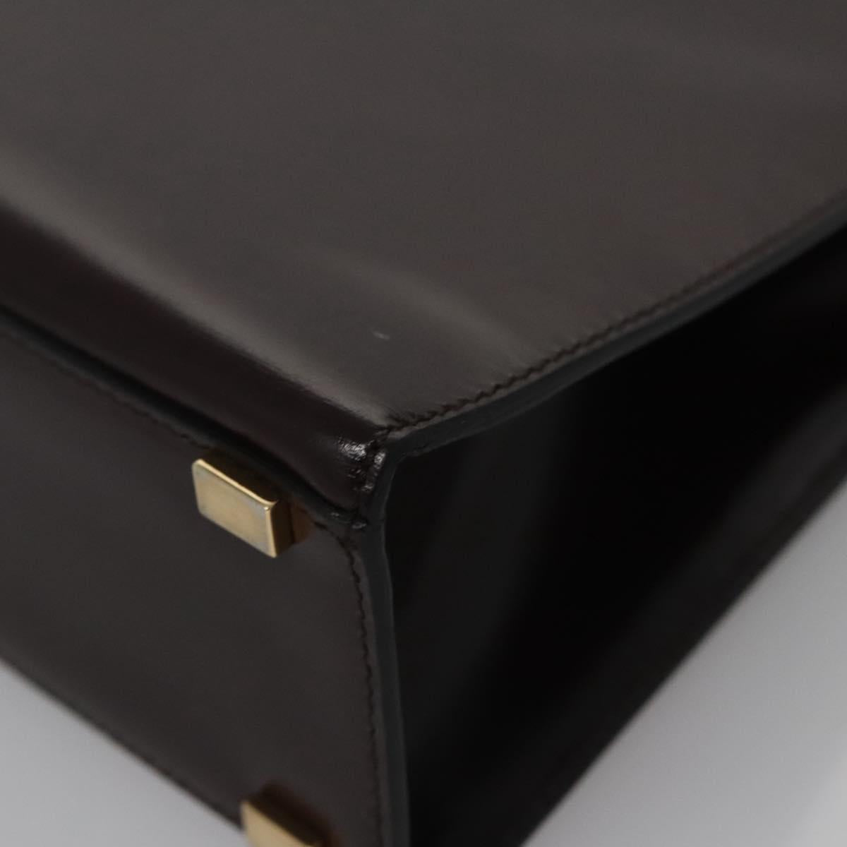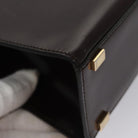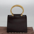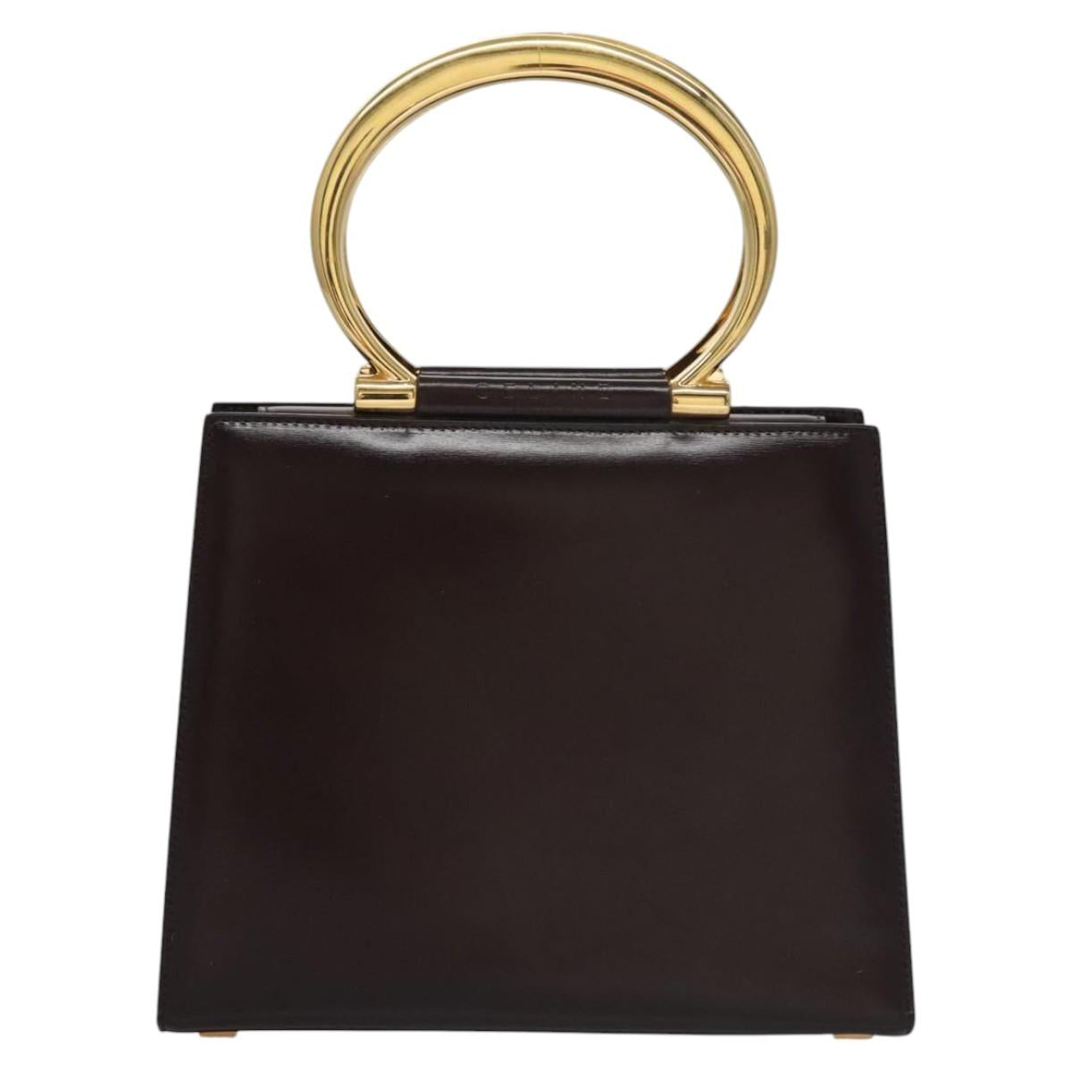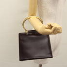 CELINE Hand Bag Leather Brown Gold Auth 115859V