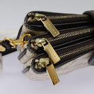 CELINE Macadam Canvas Accessory Pouch PVC Leather White Gold Auth 93826AV