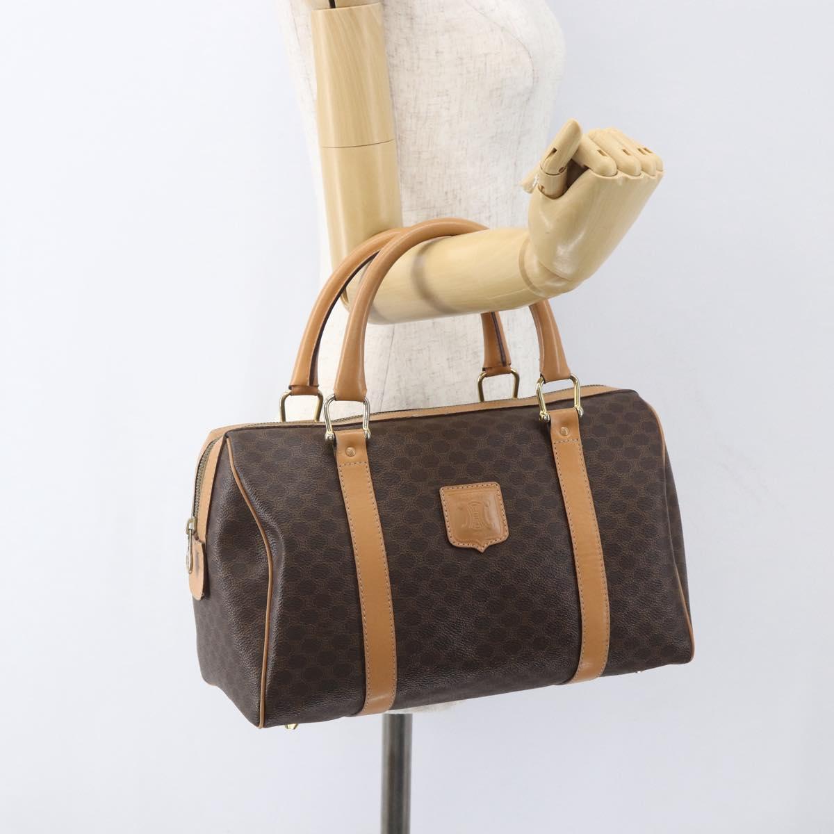 CELINE Macadam Canvas Boston Bag PVC Leather Brown Gold Auth ki6313