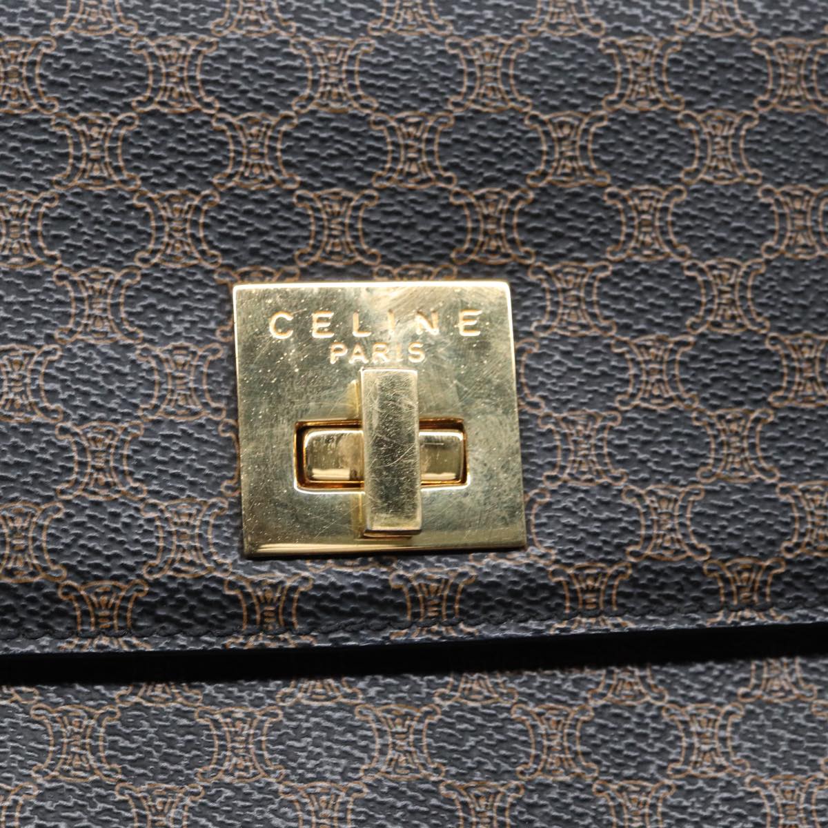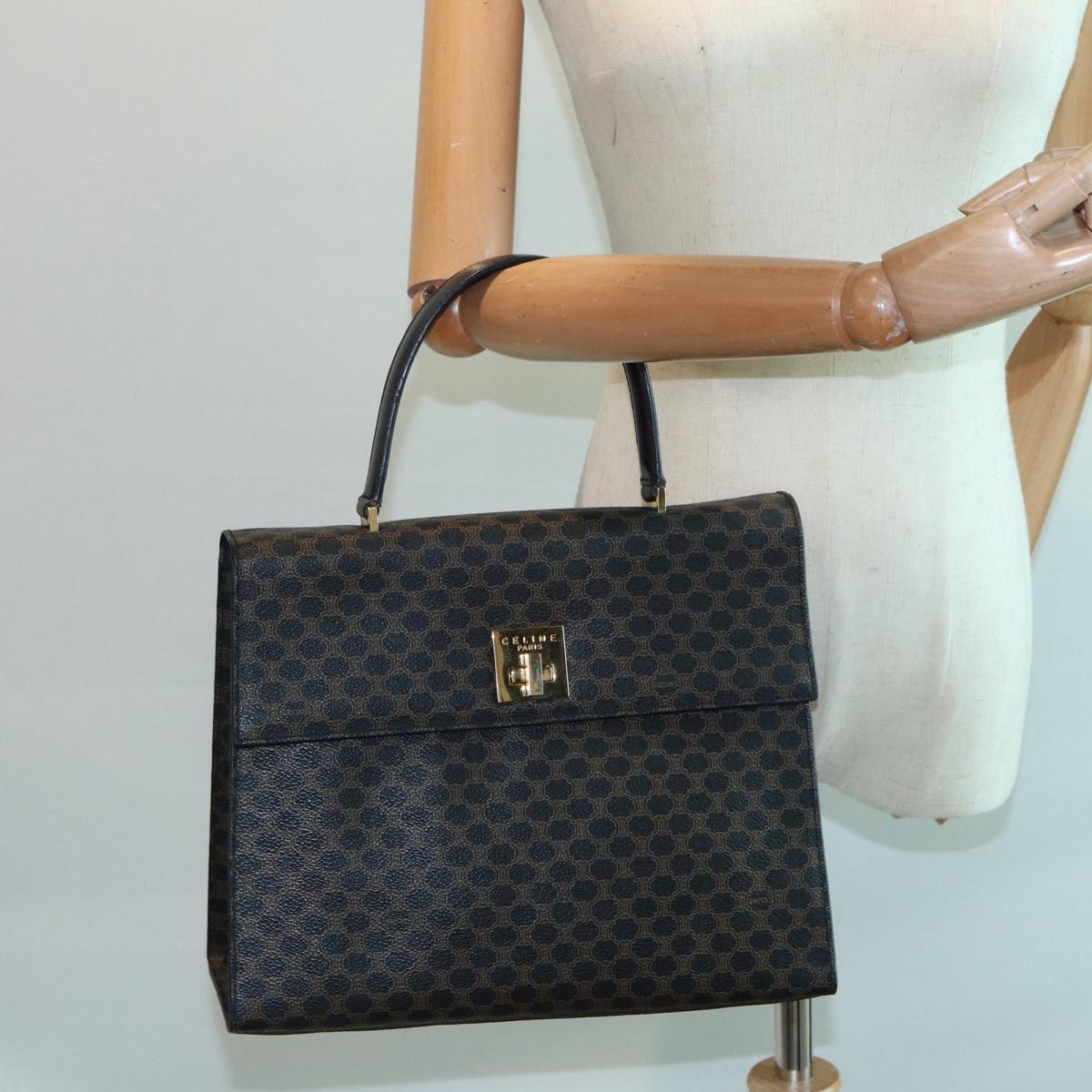 CELINE Macadam Canvas Hand Bag PVC Leather 2way Brown Black Auth 87641AV