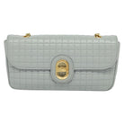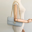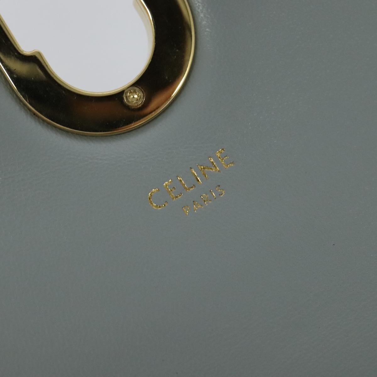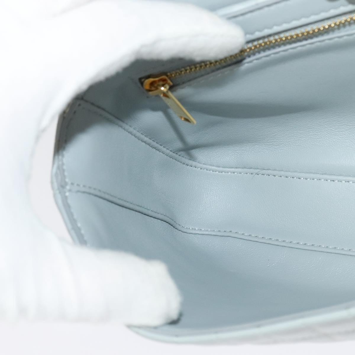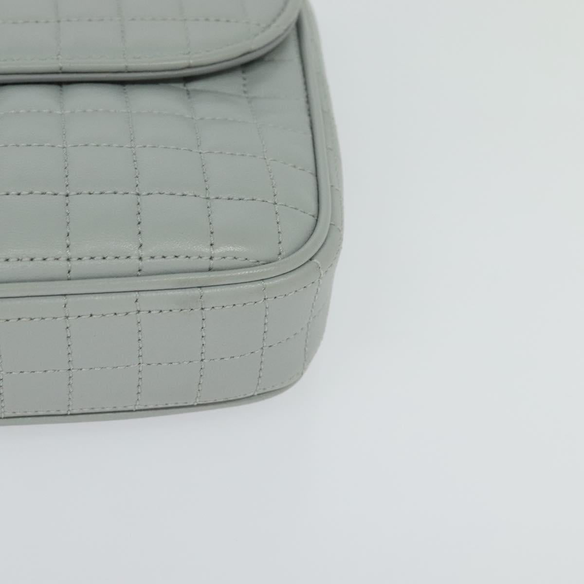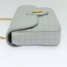 CELINE Quilted Chain Shoulder Bag Lamb Skin Gray Gold Auth mr1084V