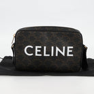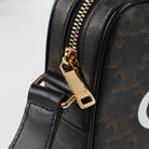CELINE Triomphe Shoulder Bag PVC Leather Black Gold Auth nb463M