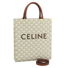 CELINE Triomphe Small Vertical Cabas Tote Bag PVC Leather 2way White Auth 95139SM