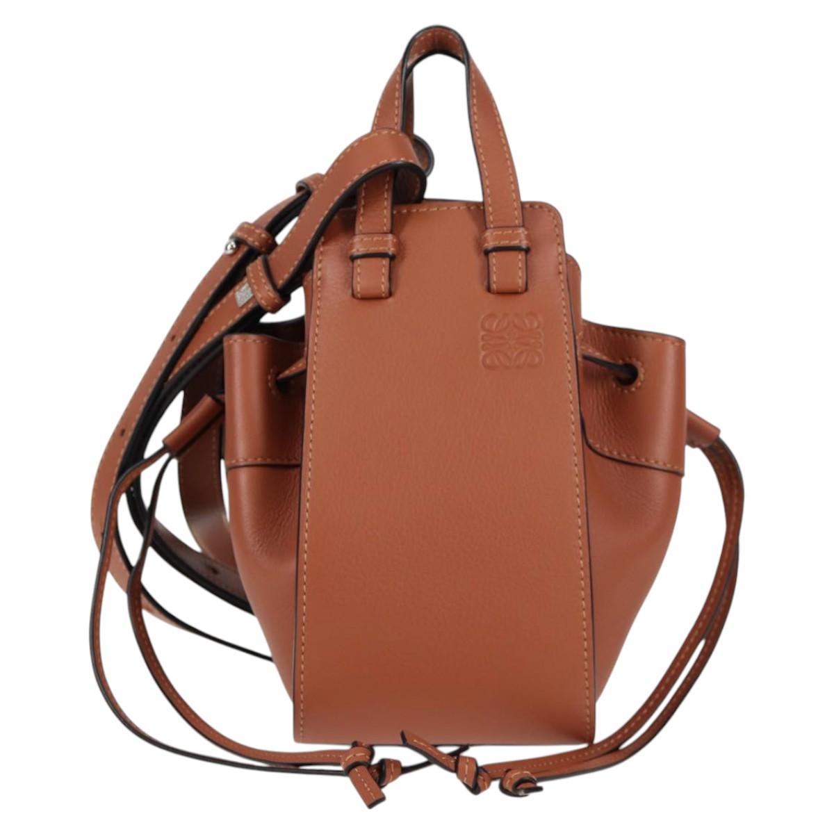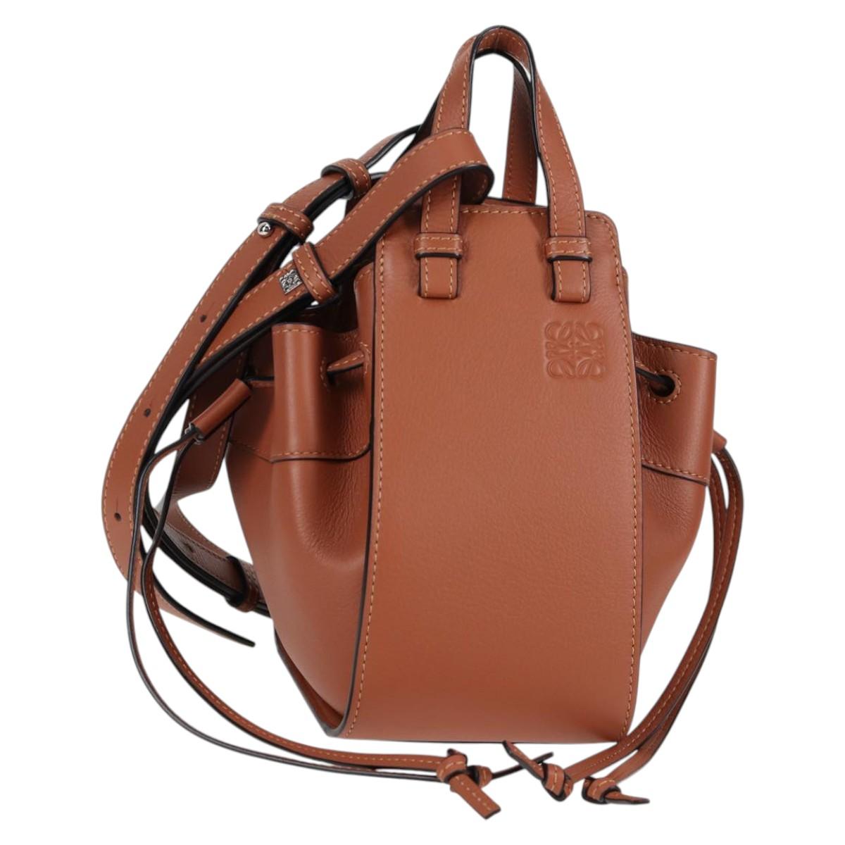 LOEWE Anagram Mini Hammock Shoulder Bag Leather Brown Gold Auth nb470M