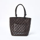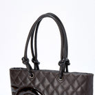 CHANEL Cambon Medium Tote 2005 Hand Bag Brown Silver Lamb Skin Auth