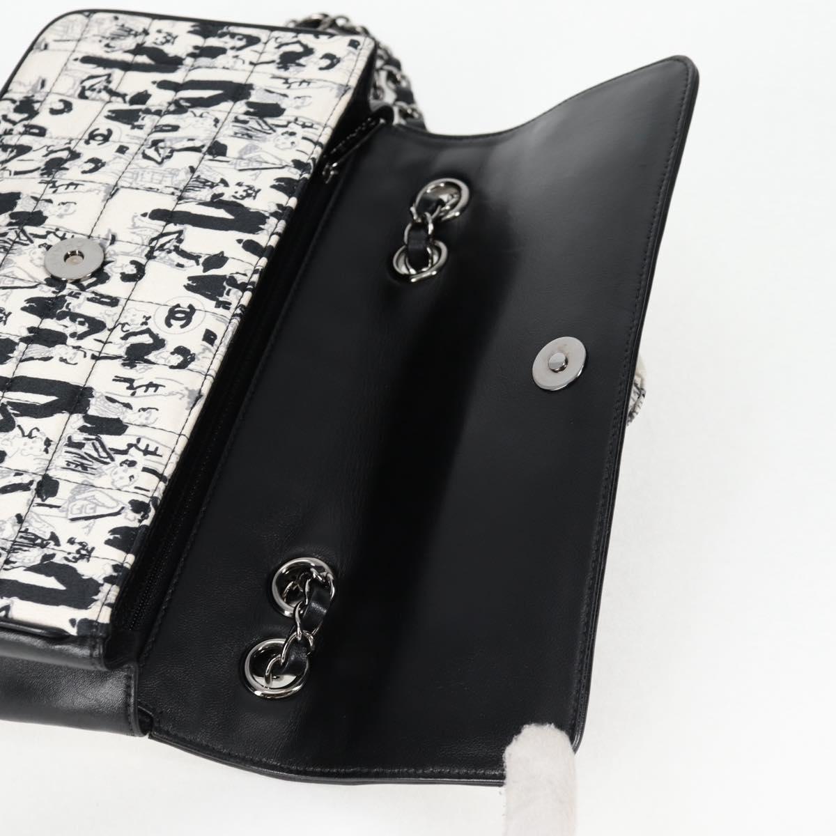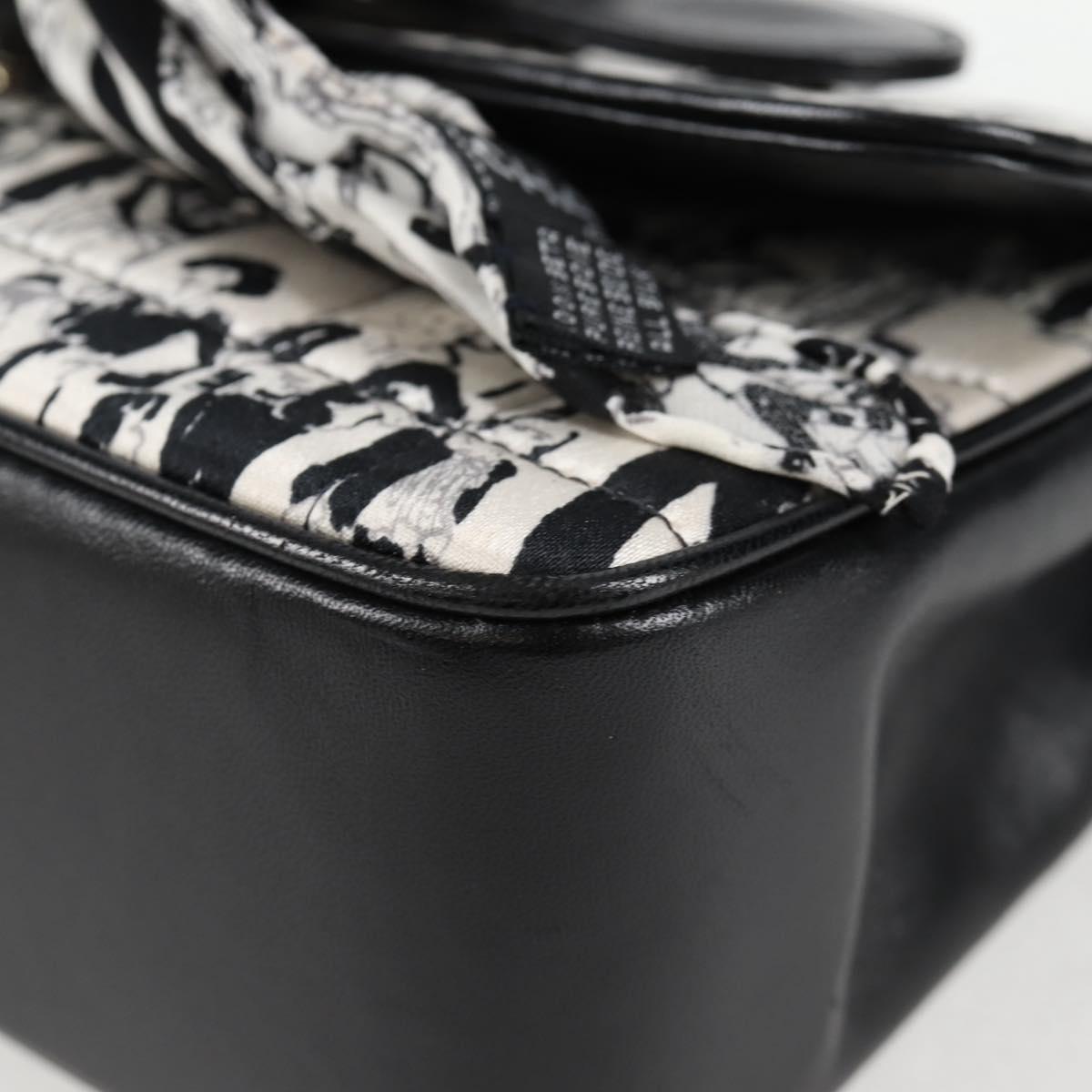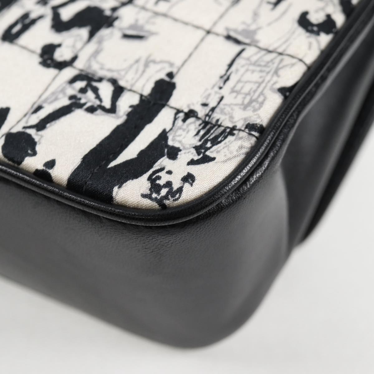 CHANEL Chain COCO Mark Choco Bar Shoulder Bag Satin Black White CC Auth 128055V