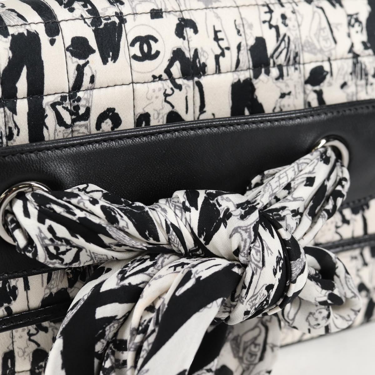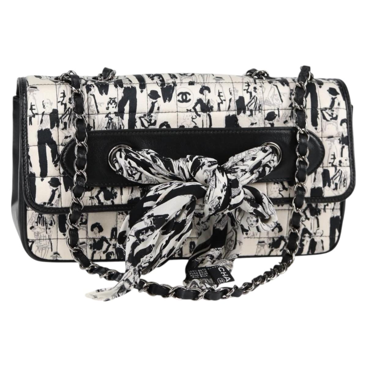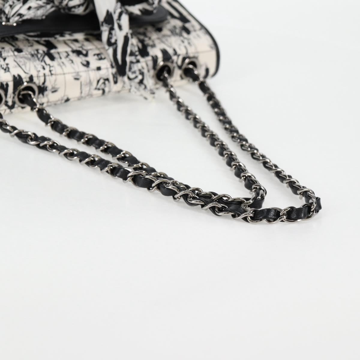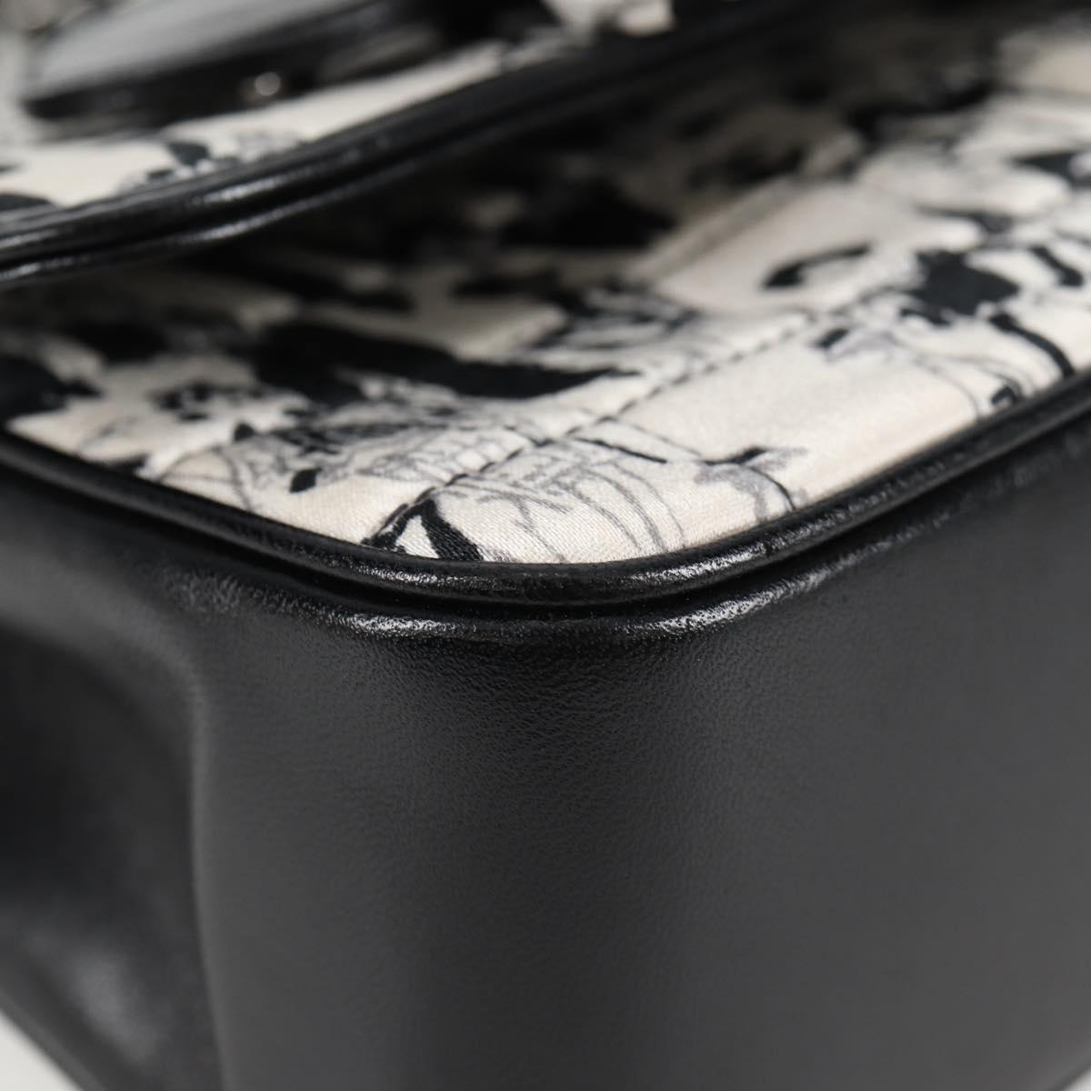 CHANEL Chain COCO Mark Choco Bar Shoulder Bag Satin Black White CC Auth 128055V