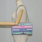 CHANEL Chain Shoulder Bag Canvas White Multicolor CC Auth 117109AM