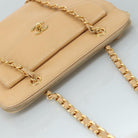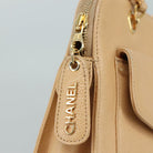 CHANEL Chain Shoulder Bag Caviar Skin Beige Gold CC Auth PP063V