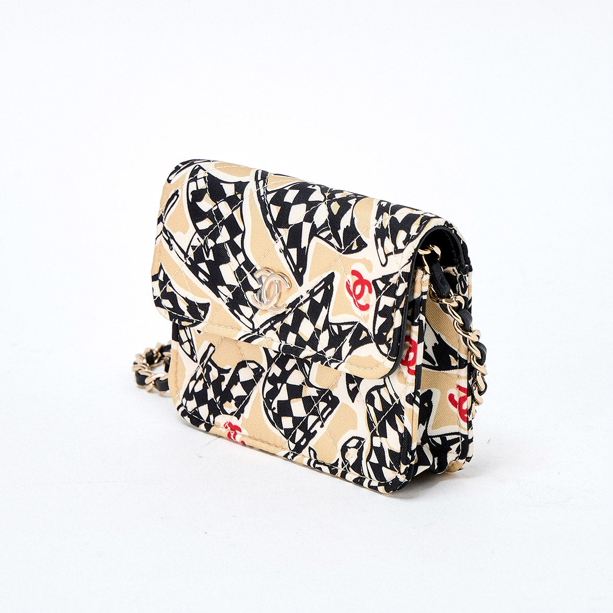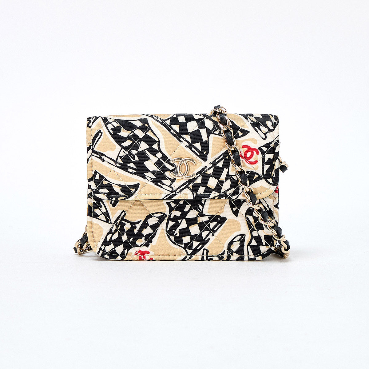 CHANEL Chain Wallet 2021 and later Shoulder Bag Beige Black Red Gold Nylon Auth