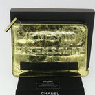 CHANEL Clutch Bag Metallic Leather Gold A82164 CC Auth 38172AV