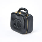 CHANEL COCO Mark 1997 Hand Bag Black Gold Caviar Skin Auth