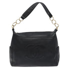 CHANEL COCO Mark Chain Shoulder Bag Leather Black Gold CC Auth am8635V