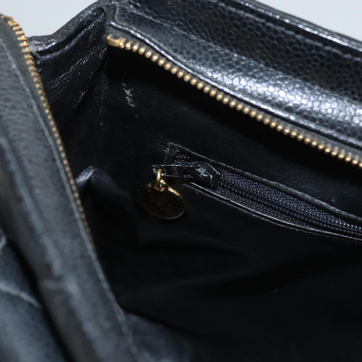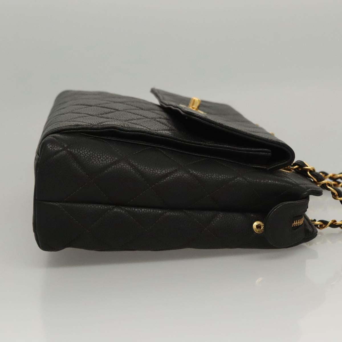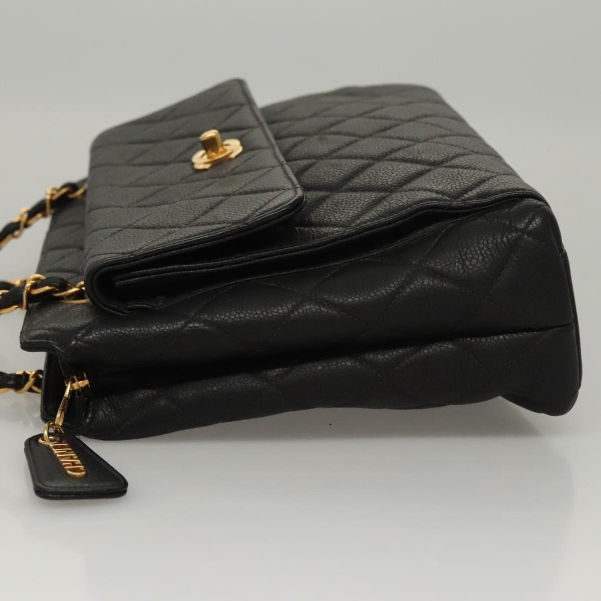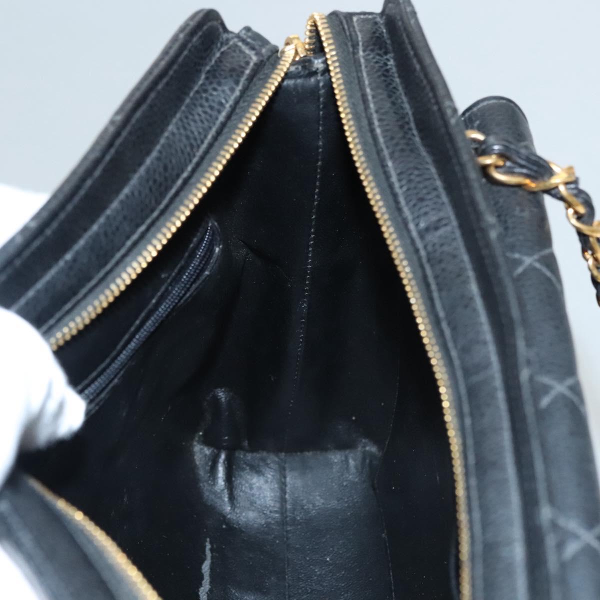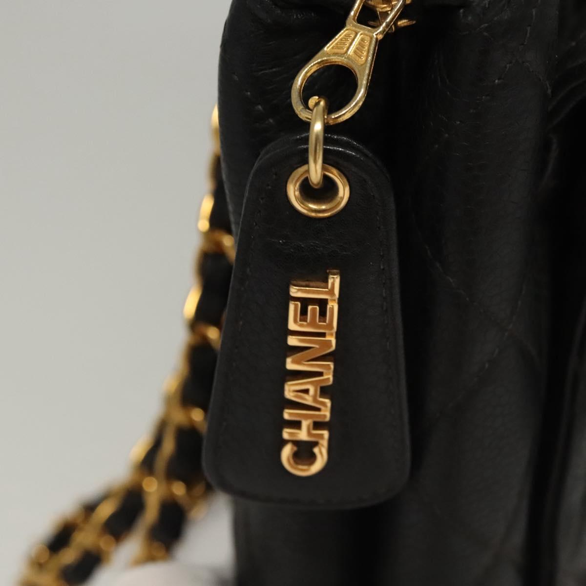 CHANEL Matelasse Chain Shoulder Bag Caviar Skin Black Gold CC Auth MY235V