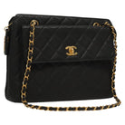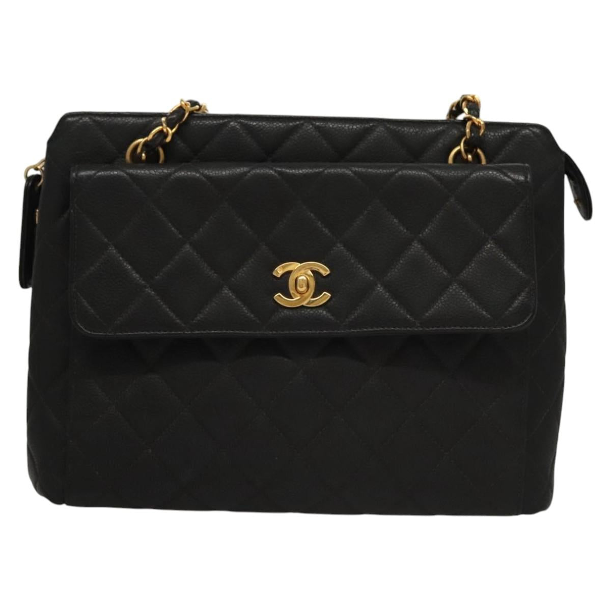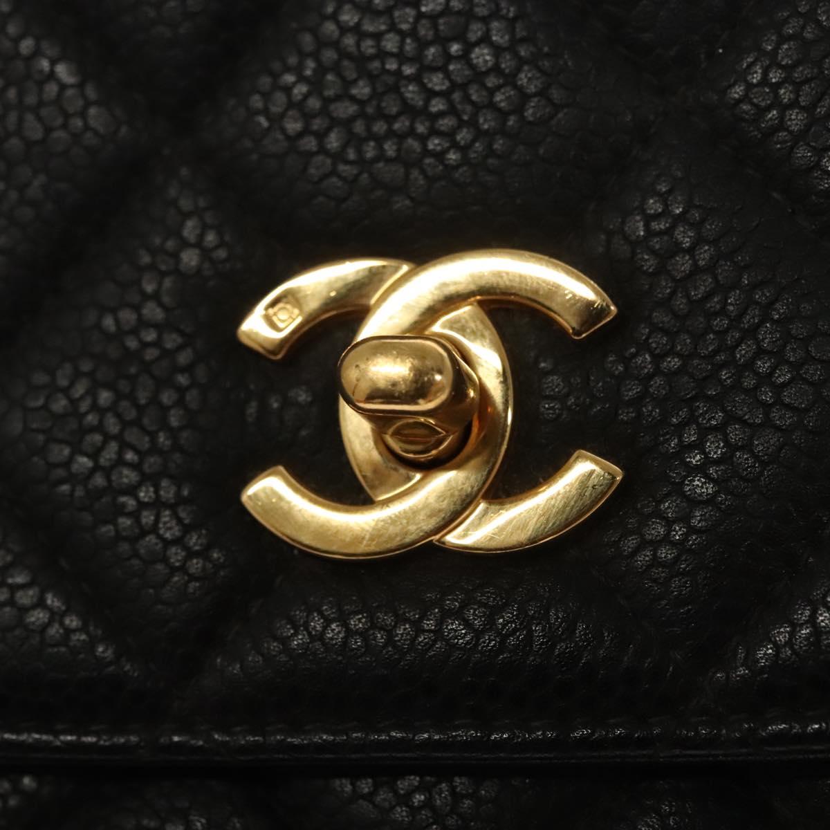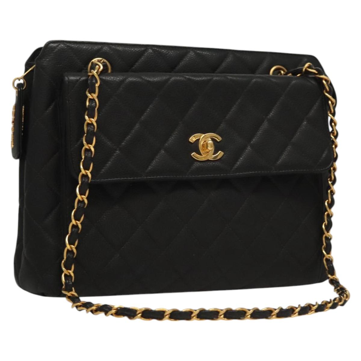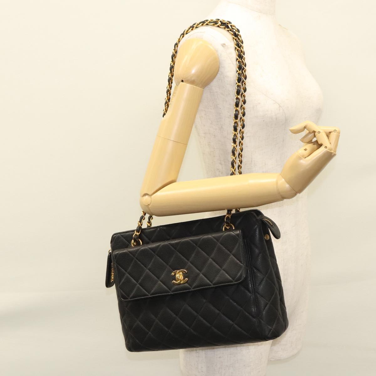 CHANEL Matelasse Chain Shoulder Bag Caviar Skin Black Gold CC Auth MY235V