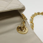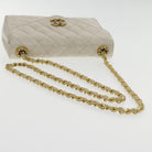 CHANEL Matelasse Chain Shoulder Bag Satin White Gold CC Auth kk366AV