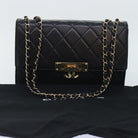 CHANEL Matelasse COCO Mark Chain Bag Lamb Skin Black Gold CC Auth yk15214AV
