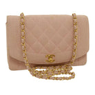 CHANEL Matelasse Turn Lock Chain Diana Shoulder Bag Canvas Pink CC Auth 29889AV
