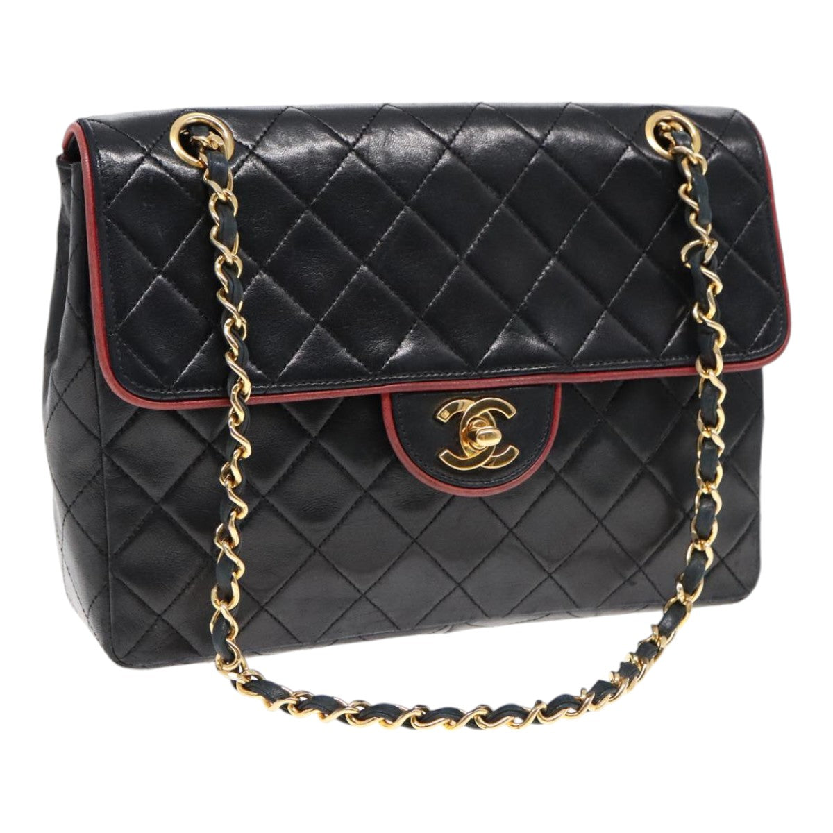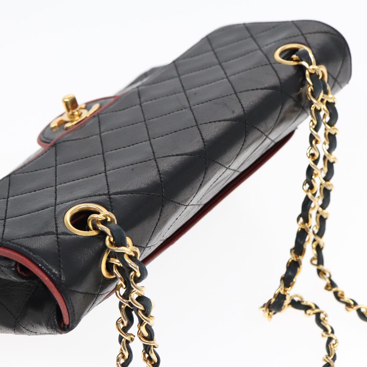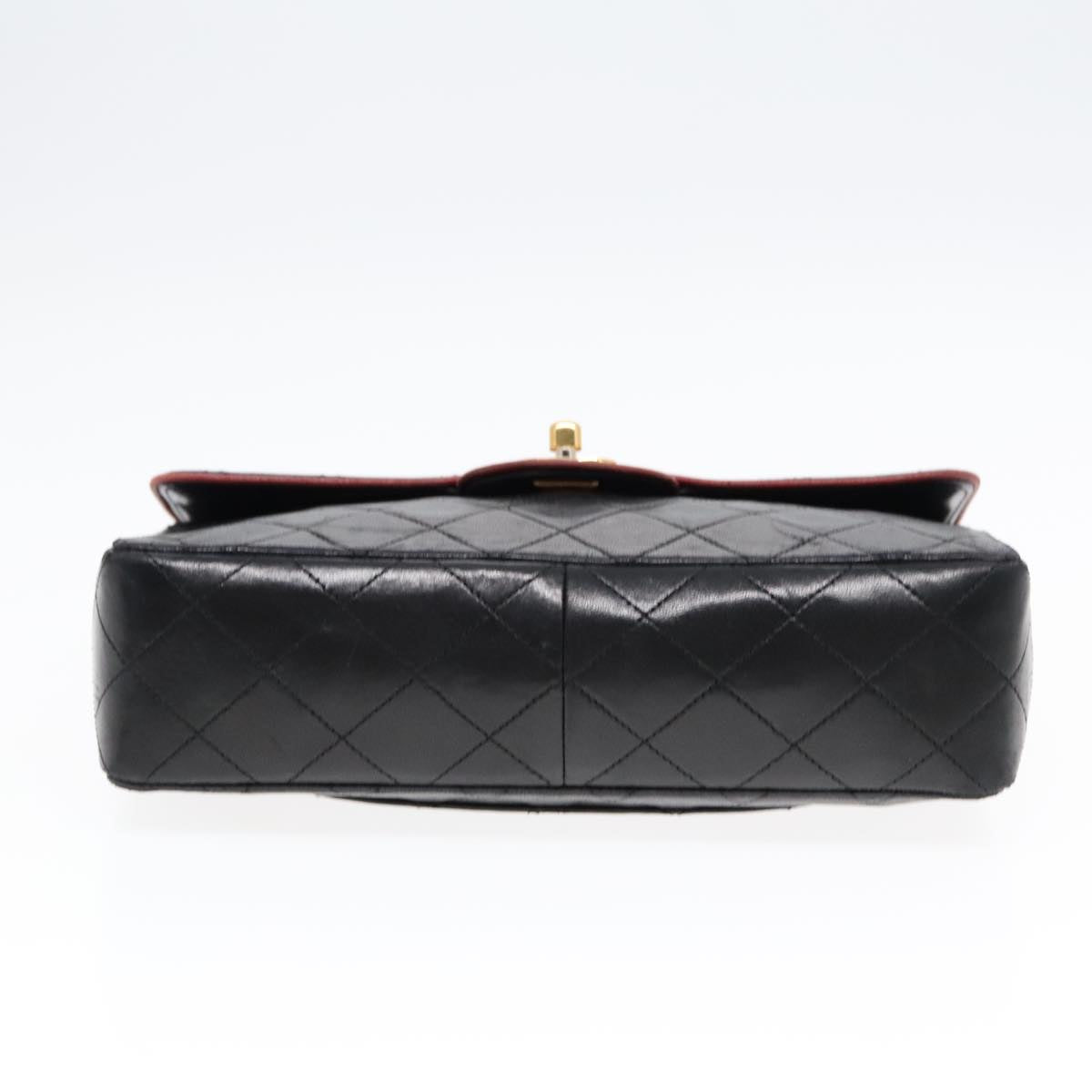 CHANEL Matelasse Turn Lock Chain Hand Bag Lamb Skin Black Gold CC Auth yk15038V