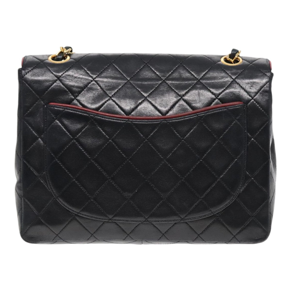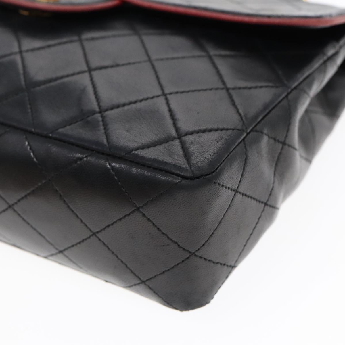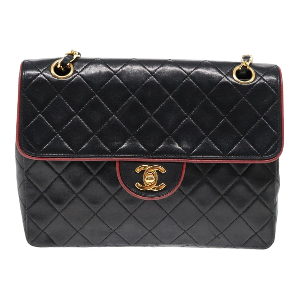 CHANEL Matelasse Turn Lock Chain Hand Bag Lamb Skin Black Gold CC Auth yk15038V