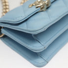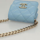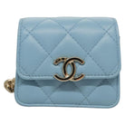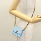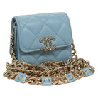 CHANEL Mini Mini Matelasse Chain Bag Lamb Skin Light Blue Gold CC Auth BD1681SM