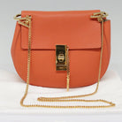 Chloe Chain Drew Shoulder Bag Leather Orange Gold Auth am6946AV