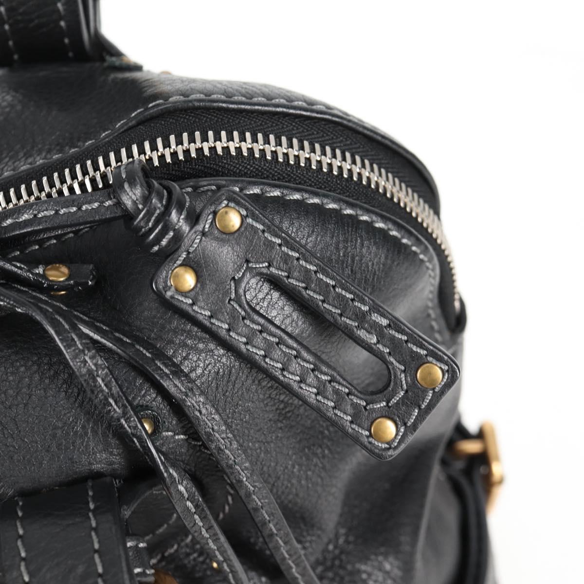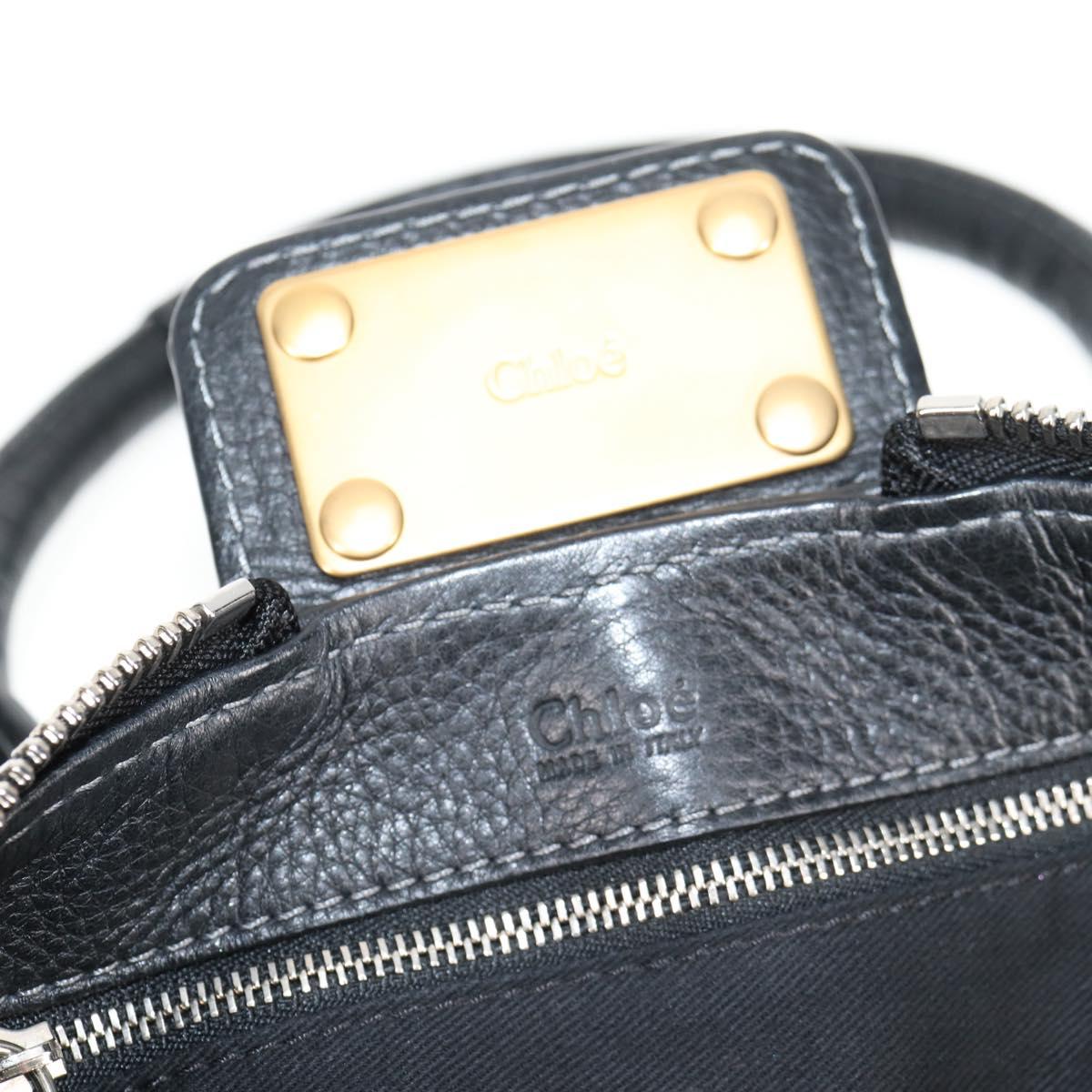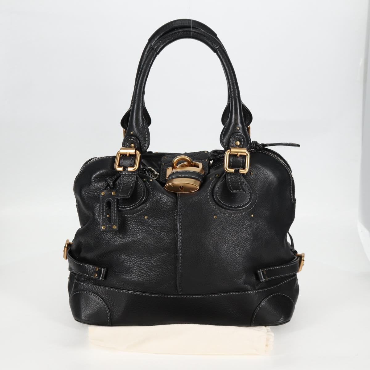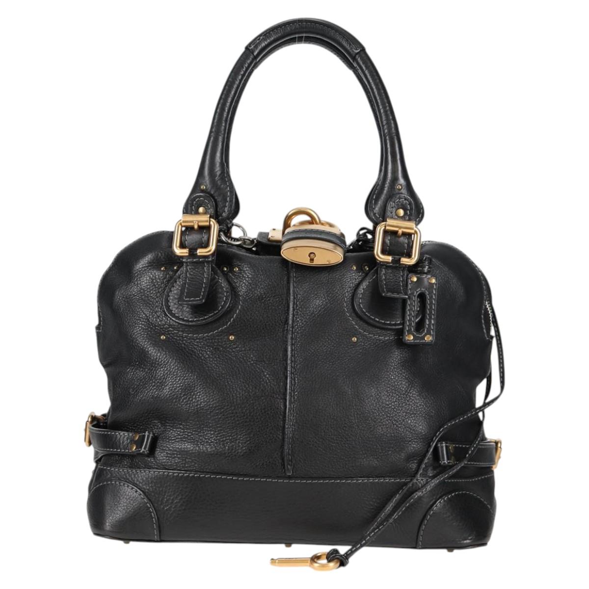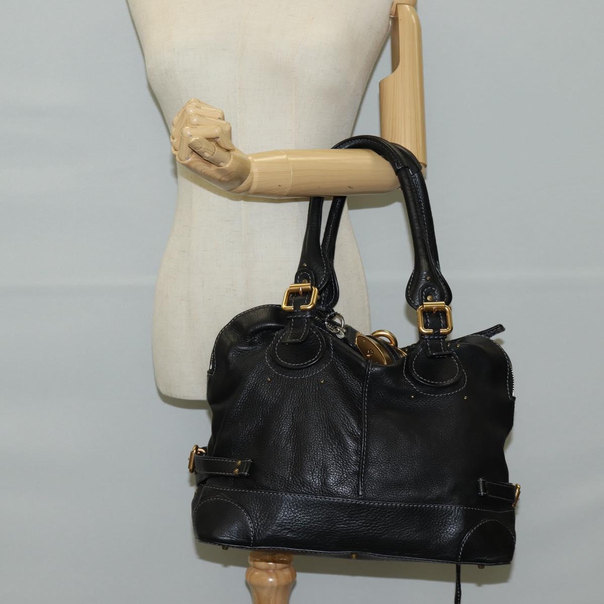 Chloe Paddington Shoulder Bag Leather Black Gold Silver Auth PP581V