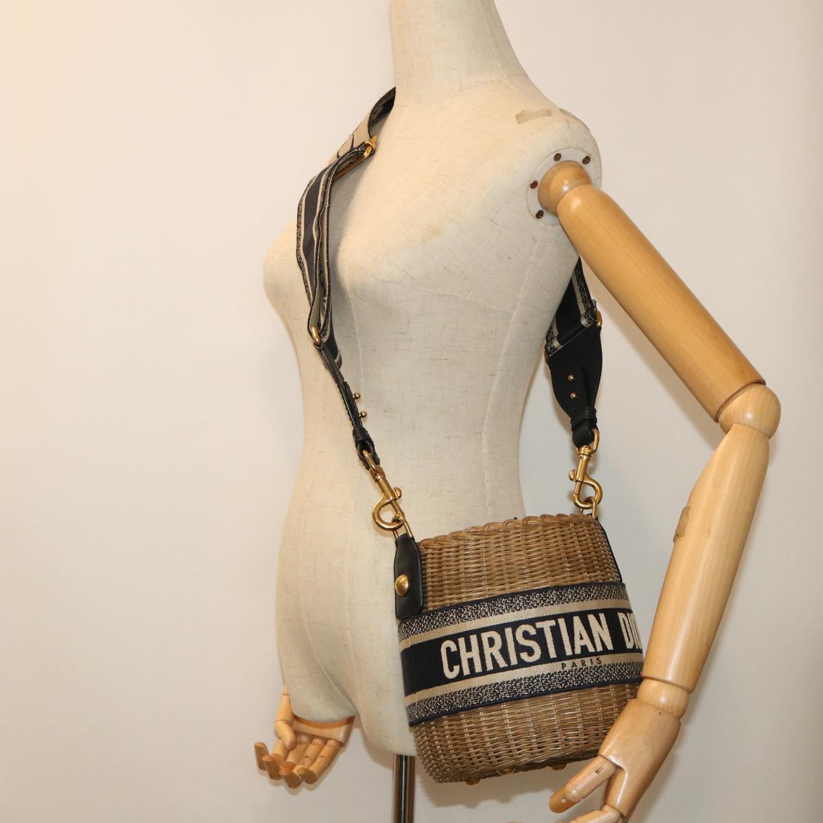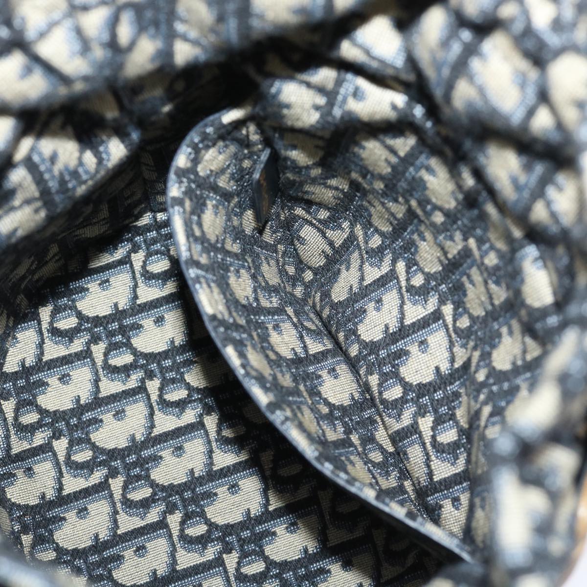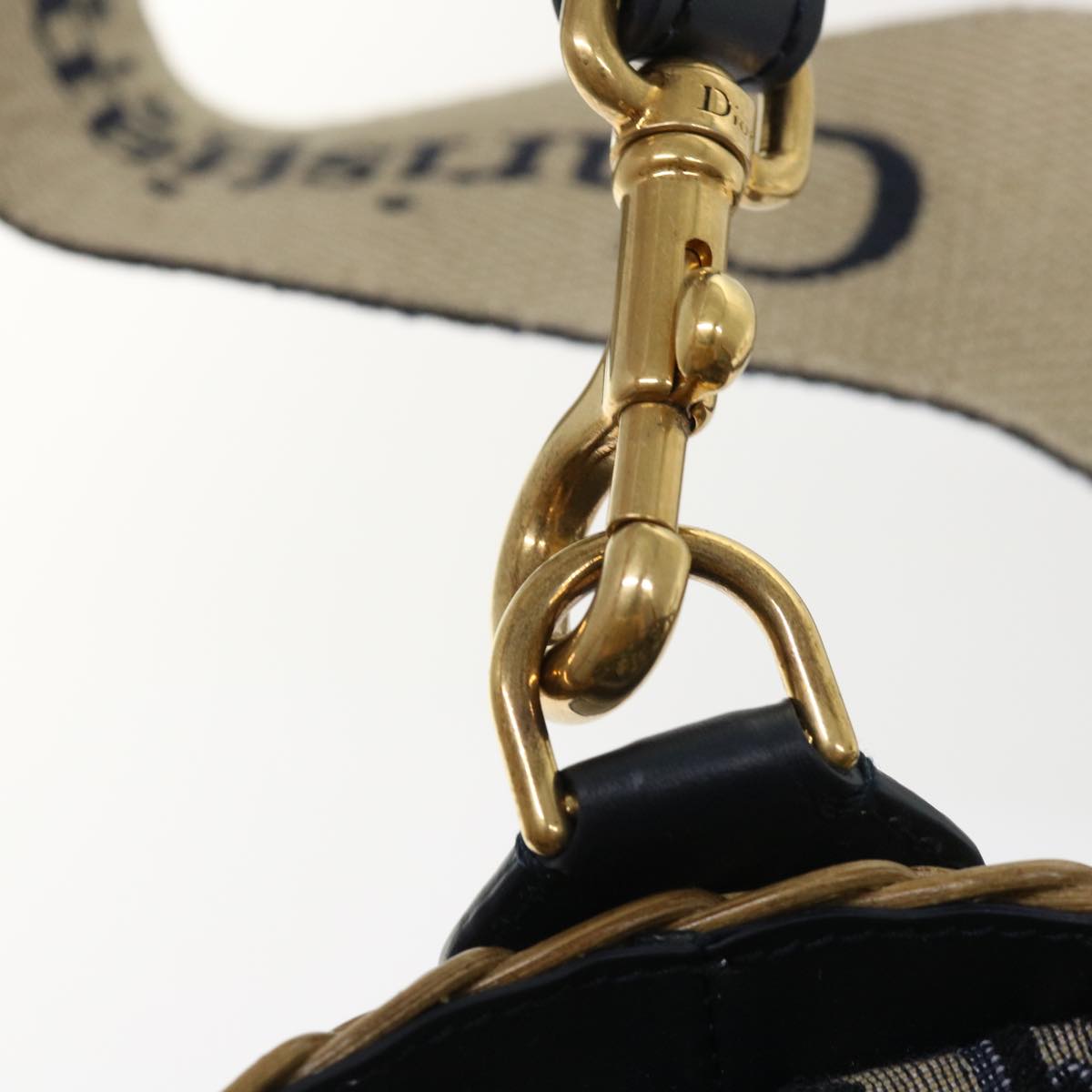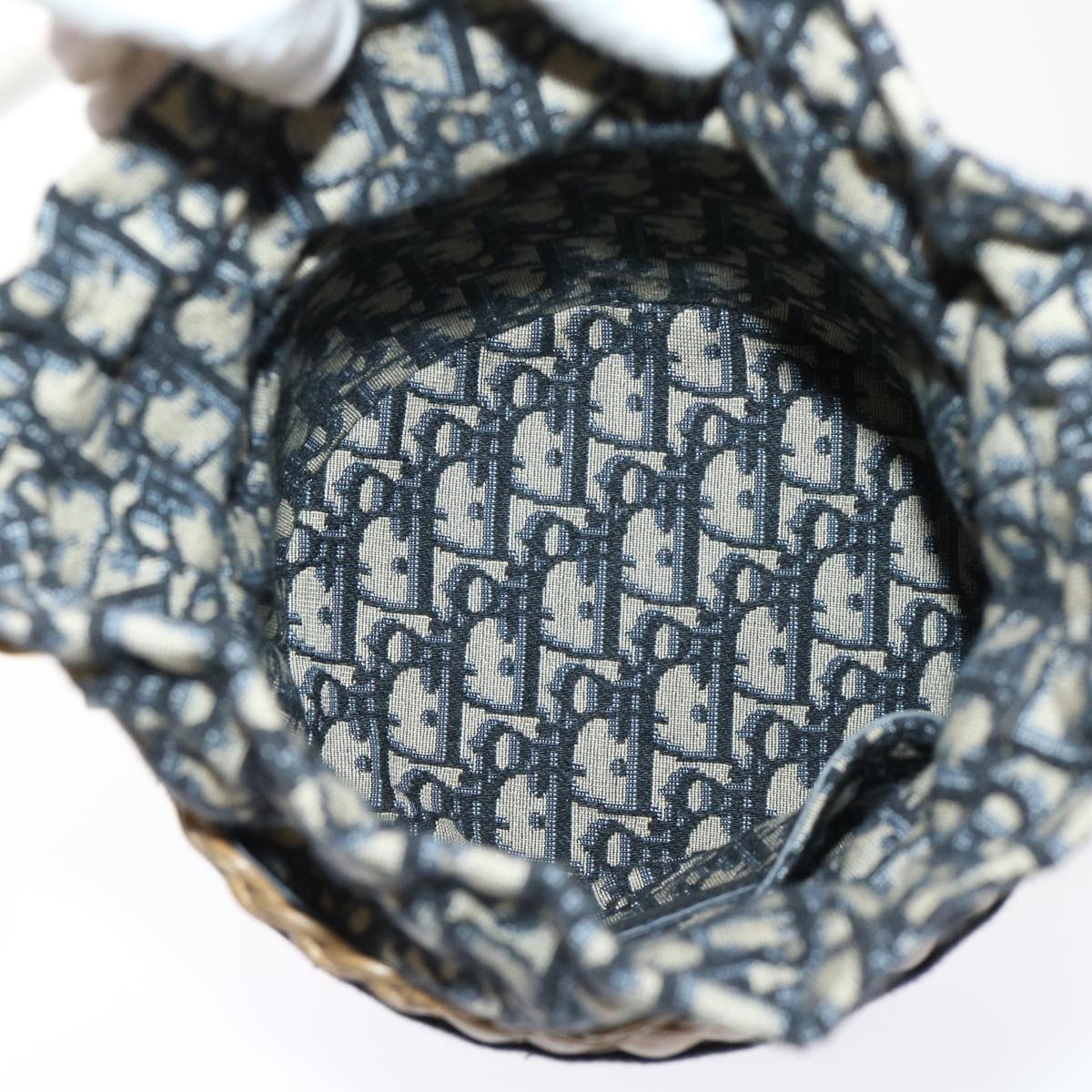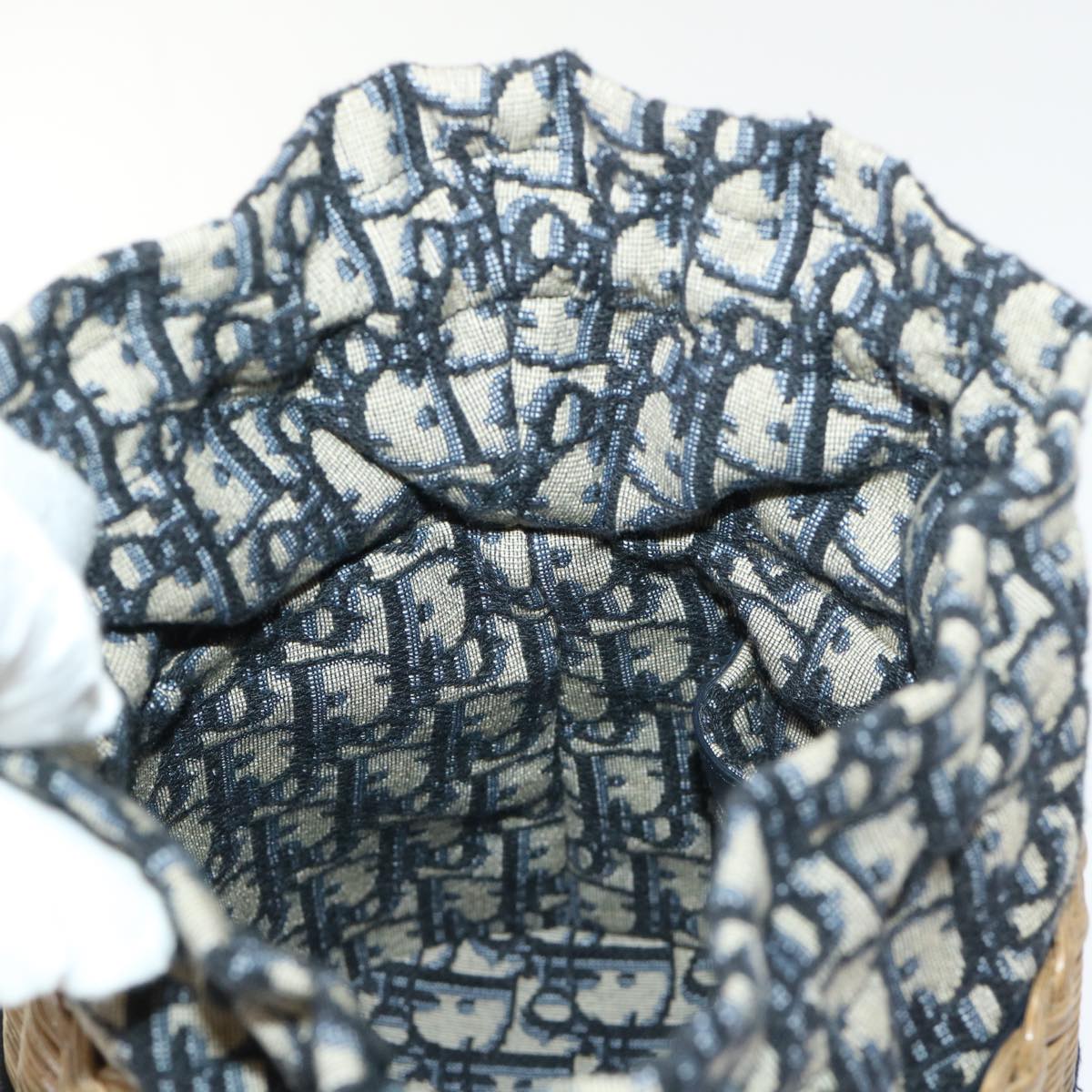 Christian Dior Basket Bag Trotter Canvas Shoulder Bag Rattan Blue Auth 51270AV