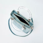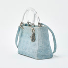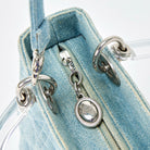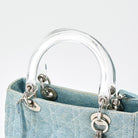 Christian Dior Lady Dior Medium Hand Bag Light Blue Silver Denim Plastic Auth