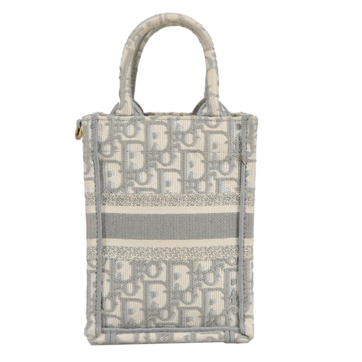 Christian Dior Oblique Vertical Book Tote Tote Bag Canvas Gray Auth 100796AV