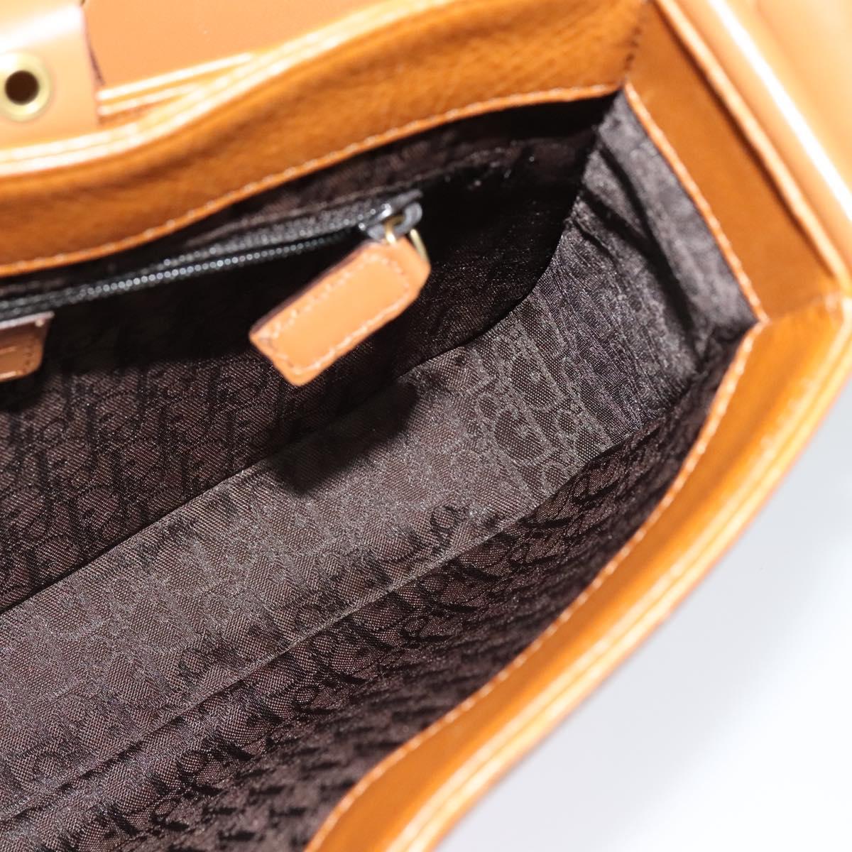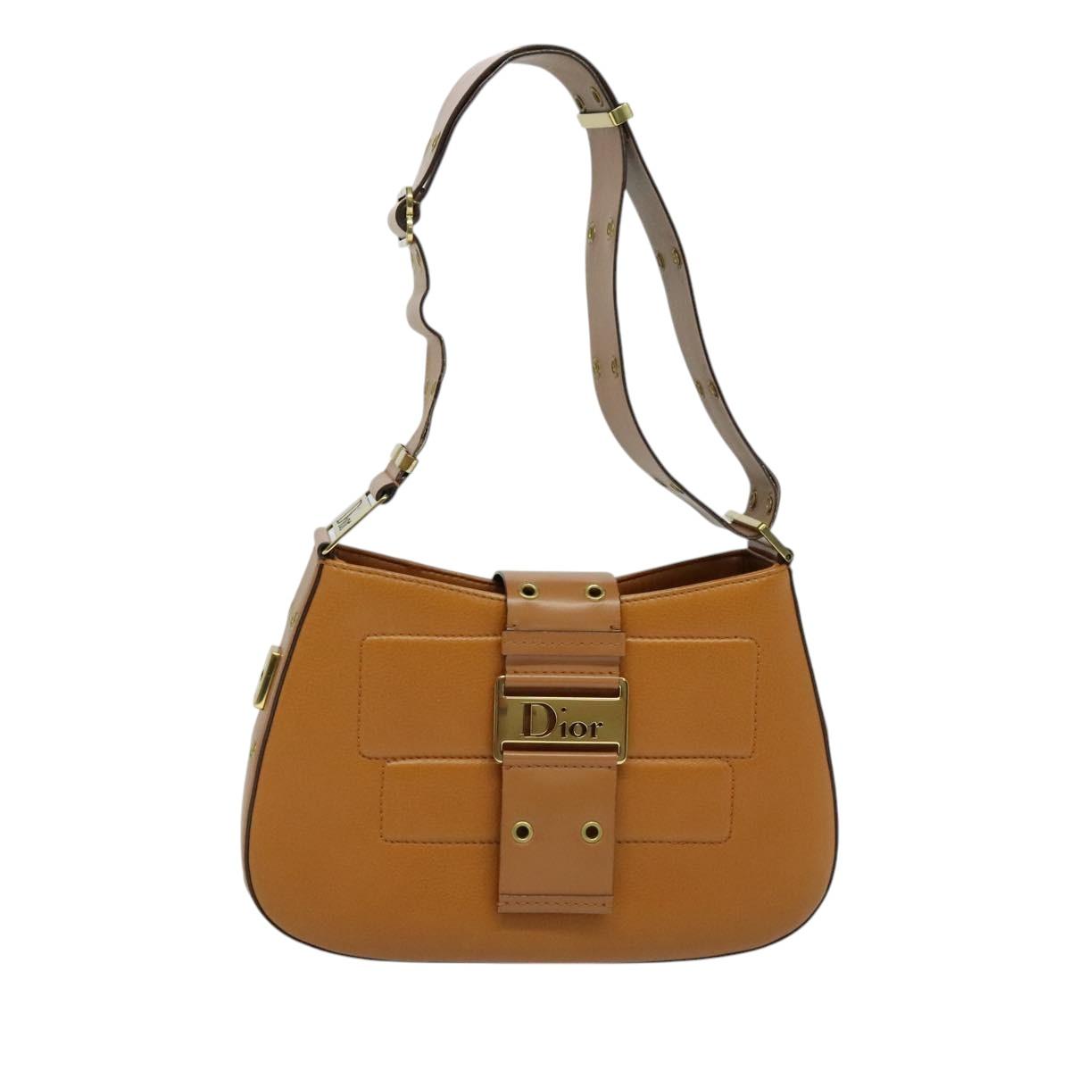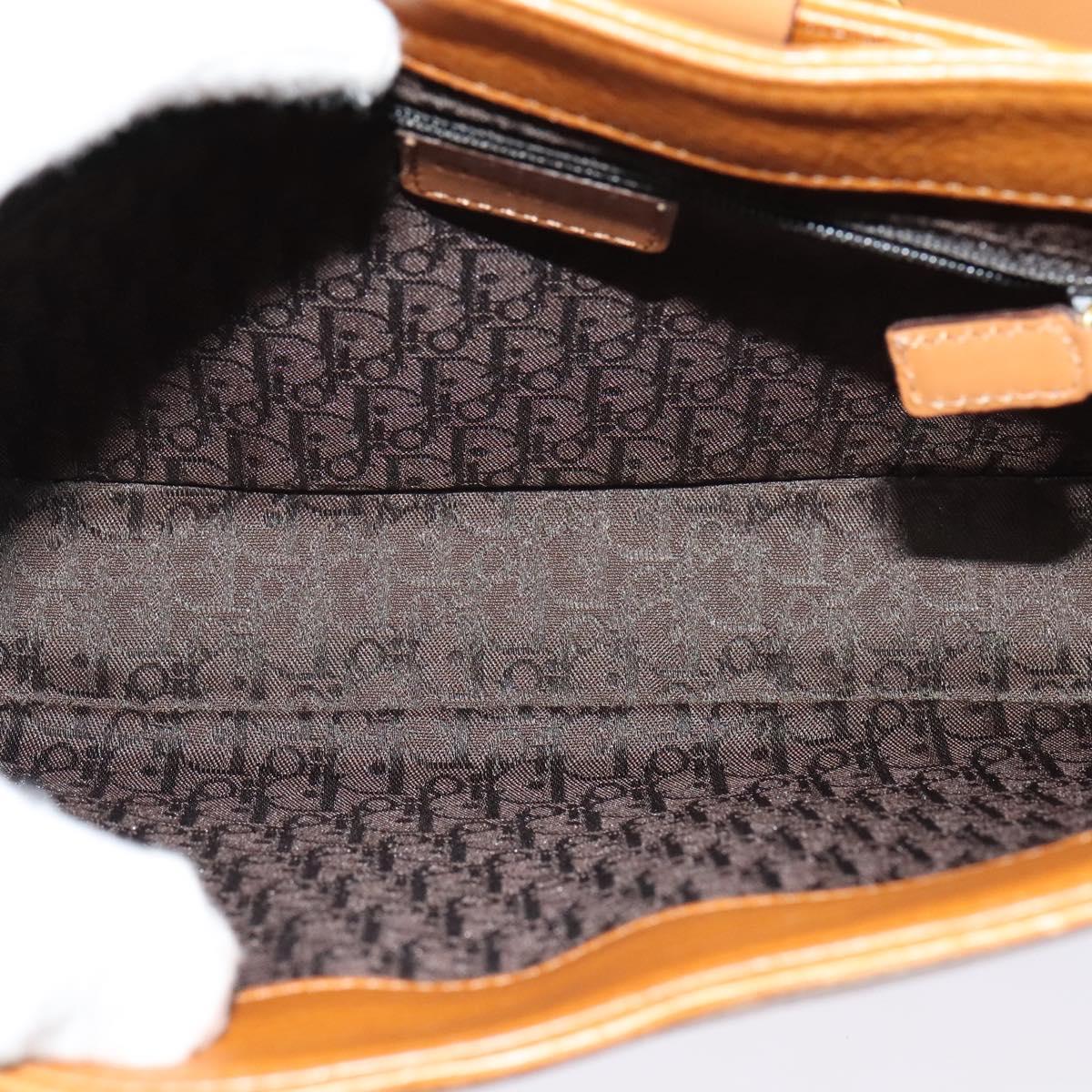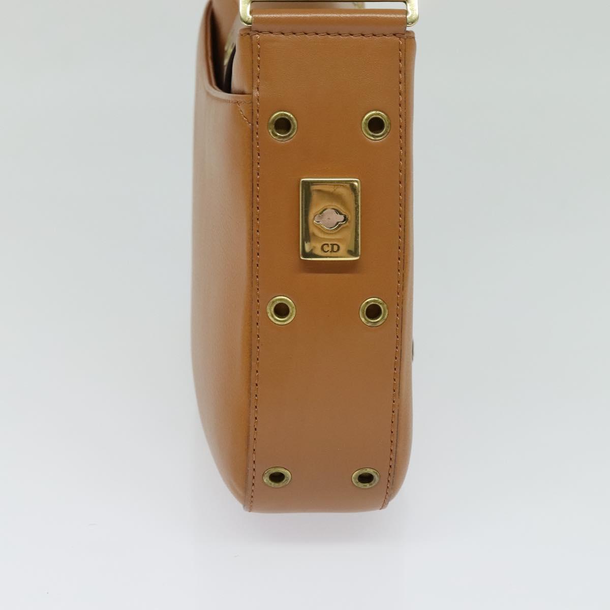 Christian Dior Shoulder Bag Leather Brown Gold Auth am8234V