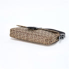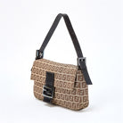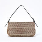 FENDI Mamma Baguette Zucchino Shoulder Bag Beige Matte Silver Canvas Auth