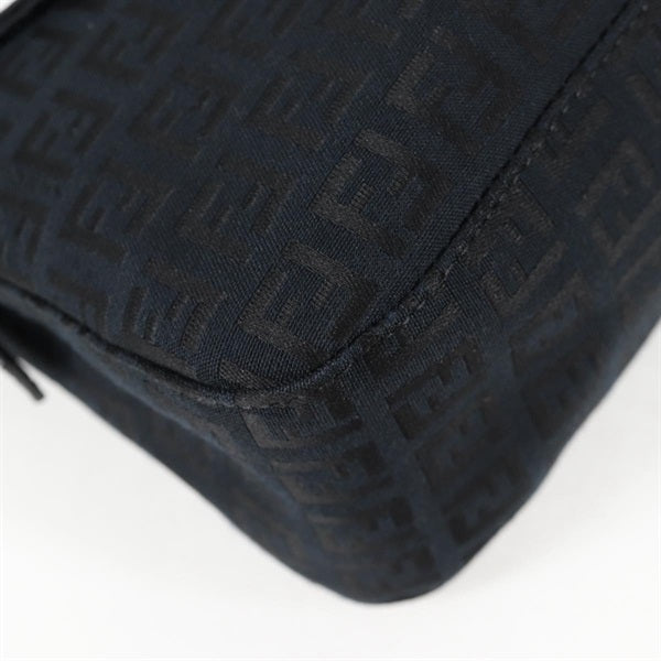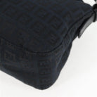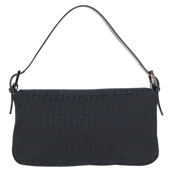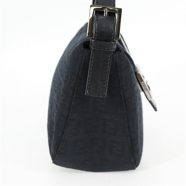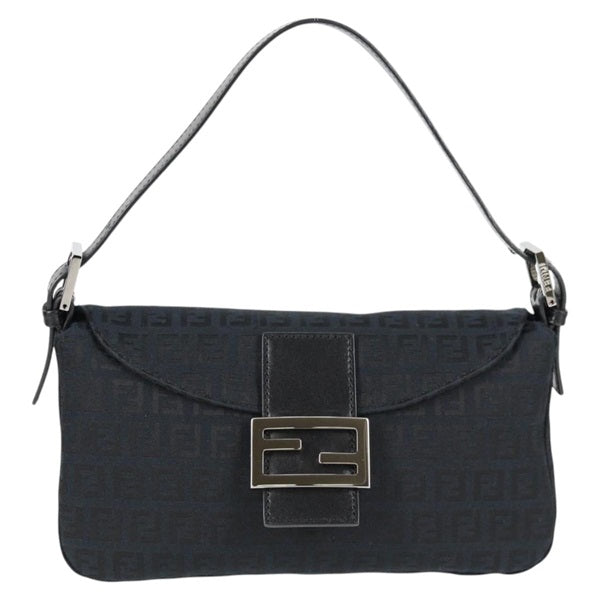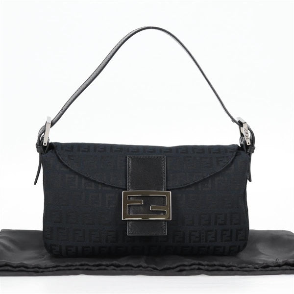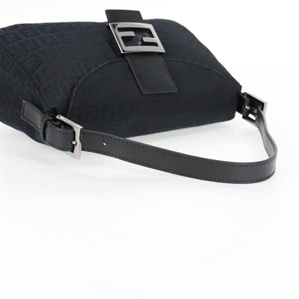 FENDI Mamma Baguette Zucchino Shoulder Bag Black Silver Canvas Auth