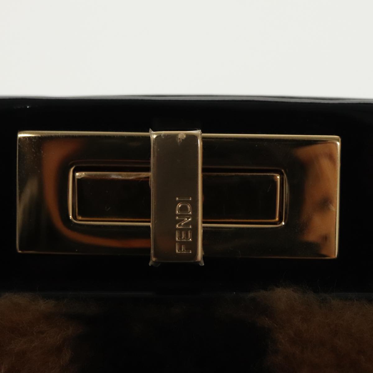 FENDI Pecan Peek A Boo Regular Hand Bag Mouton 2way Black Brown Auth 101314SV