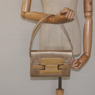 FENDI Shoulder Bag Satin Beige Gold Auth 118128V