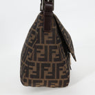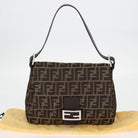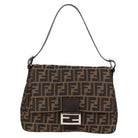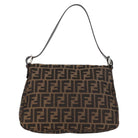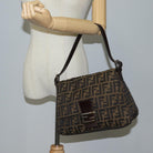 FENDI Zucca Canvas Mamma Baguette Shoulder Bag Black Brown Silver Auth yk17981AM