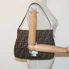 FENDI Zucca Canvas Mamma Baguette Shoulder Bag Brown Black Auth am6643AV