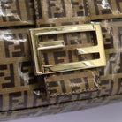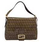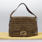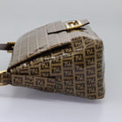 FENDI Zucchino Canvas Mamma Baguette Shoulder Bag Beige Auth PP337AV