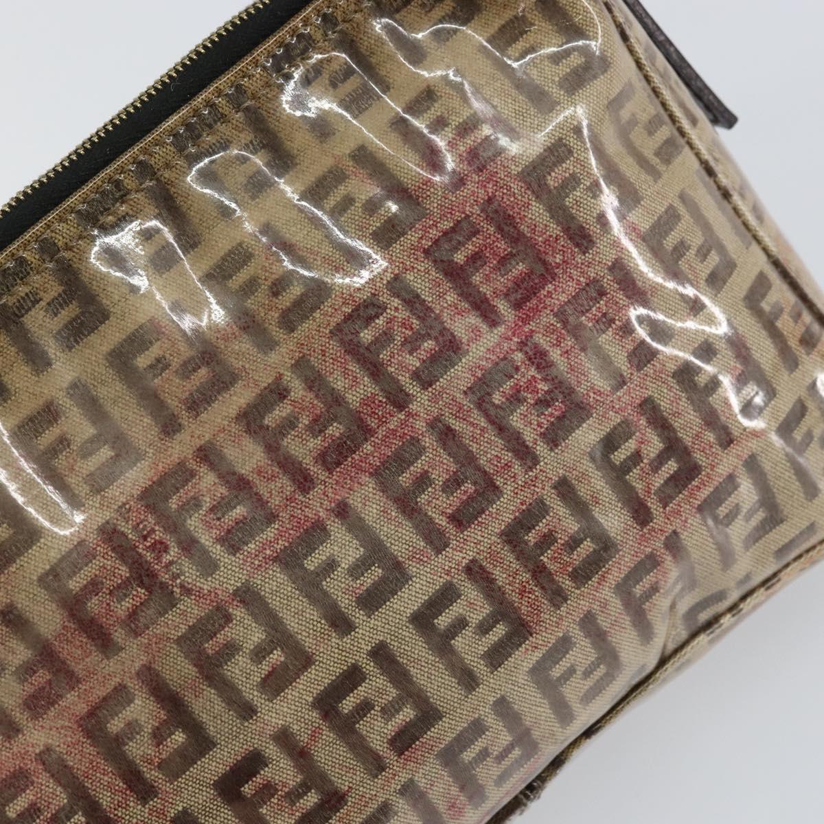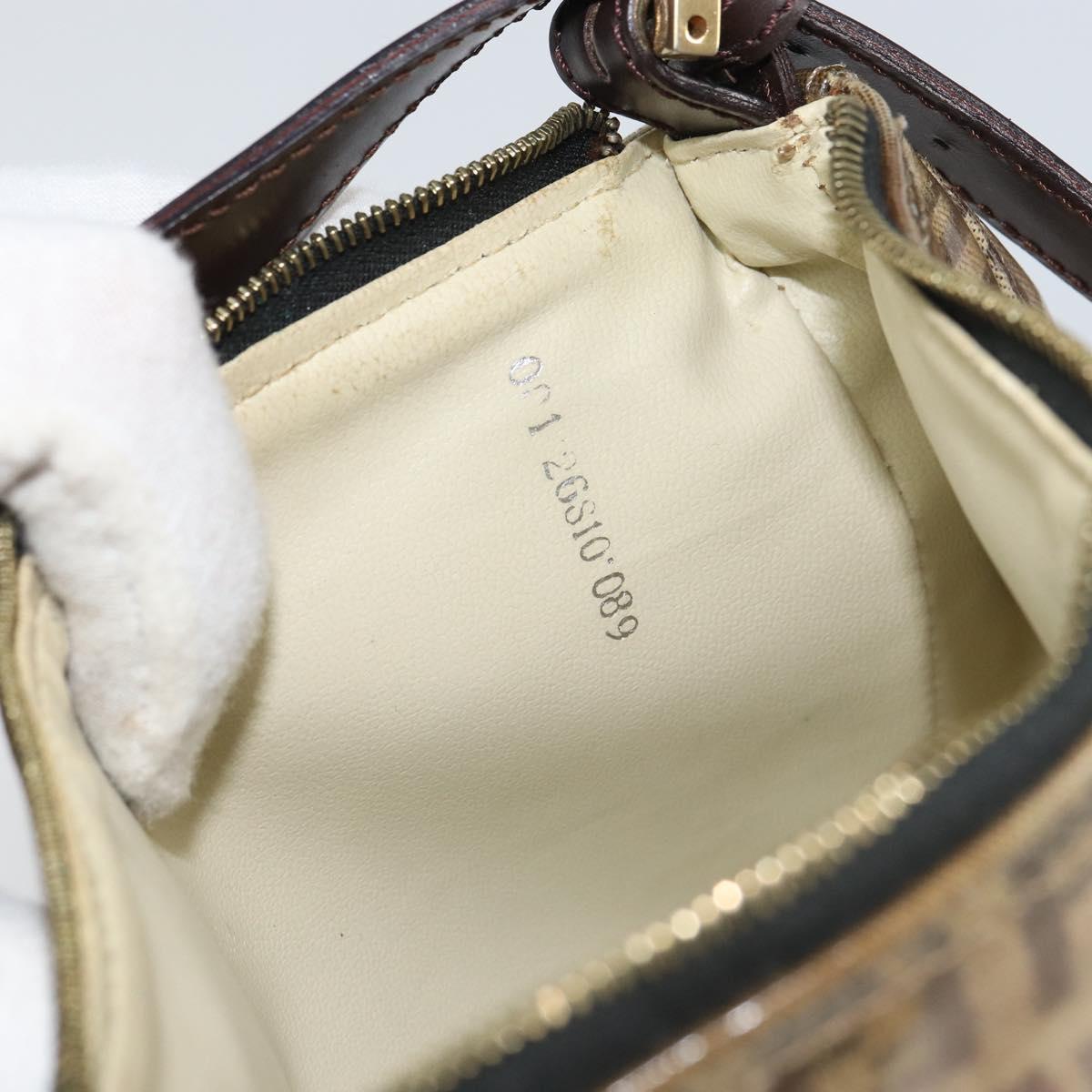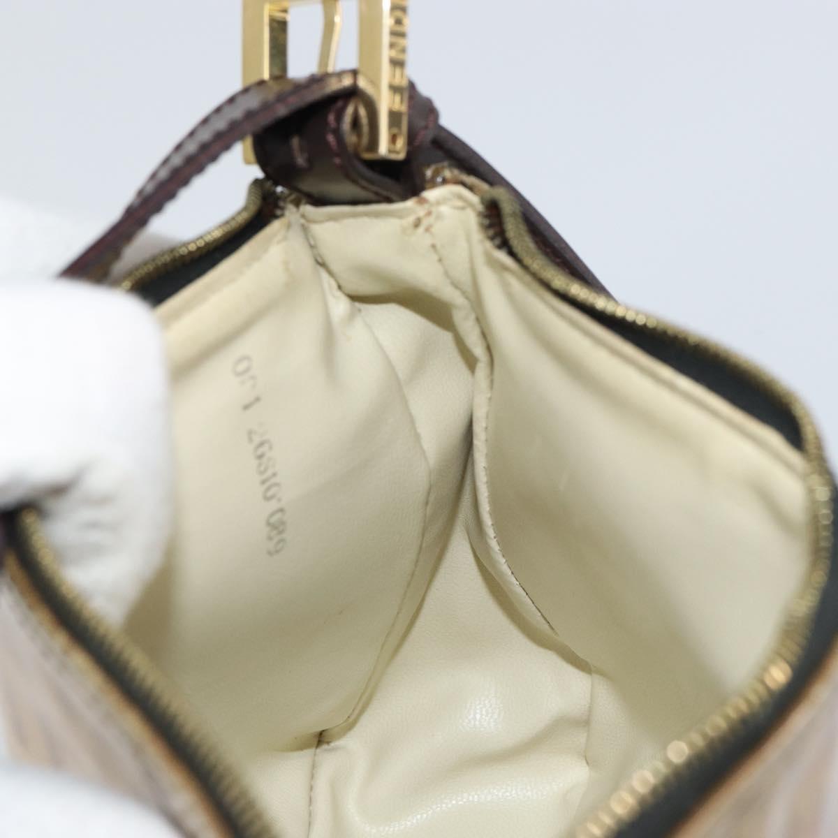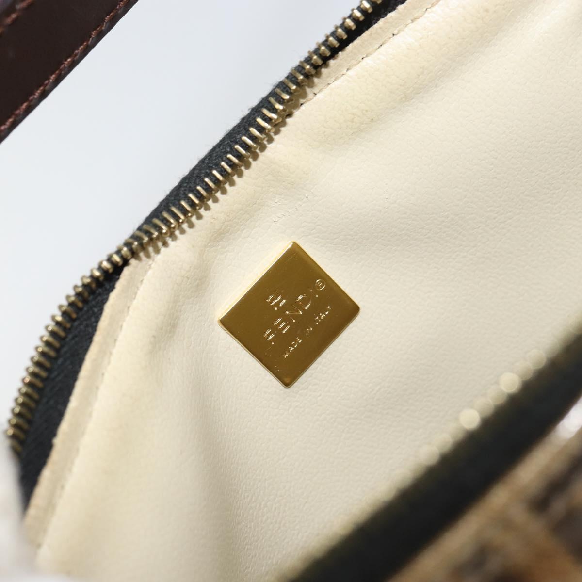 FENDI Zucchino Canvas Pouch Enamel Beige Gold Auth 156480