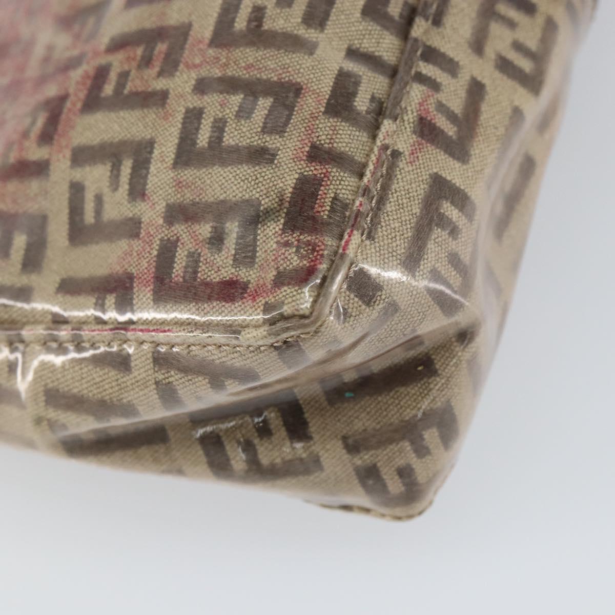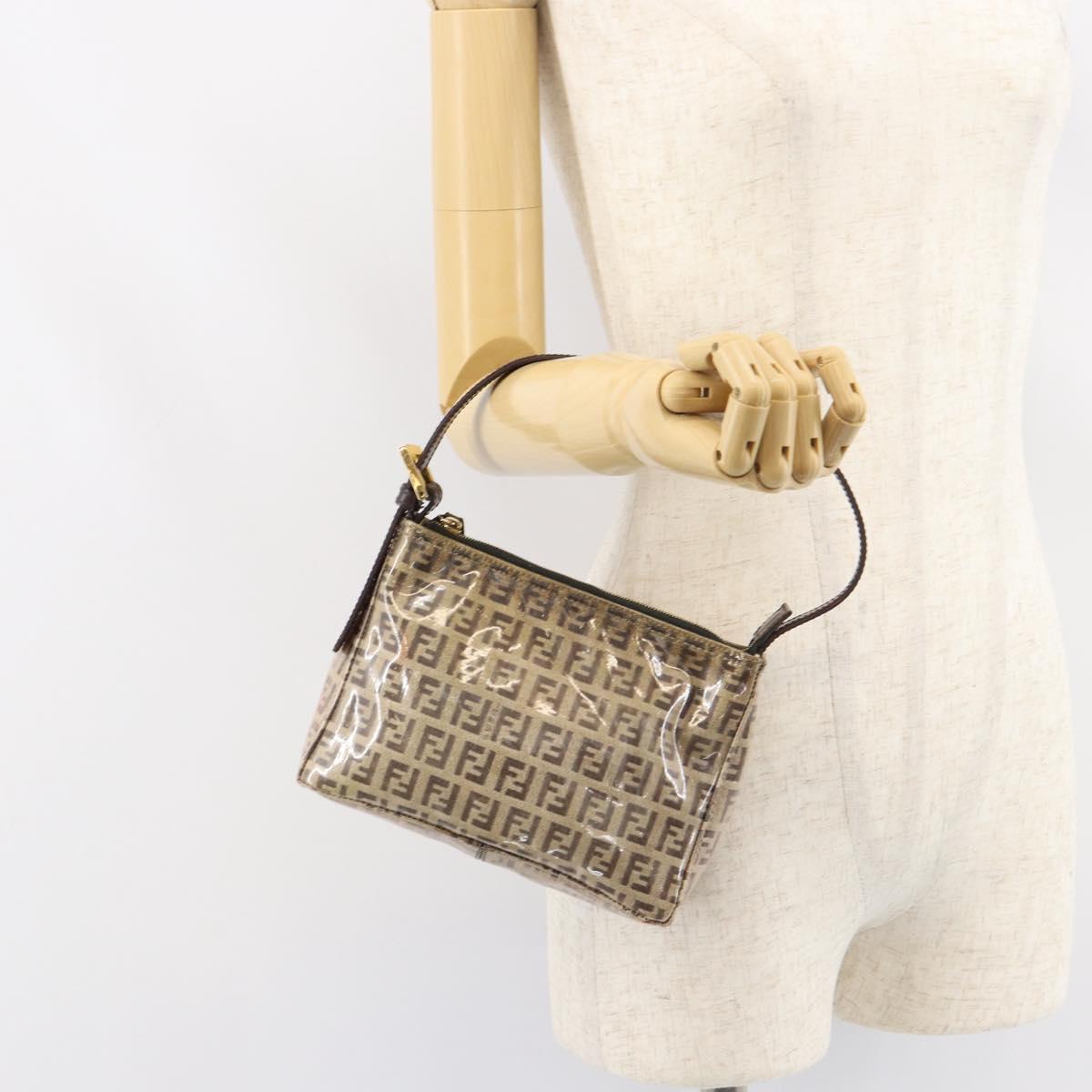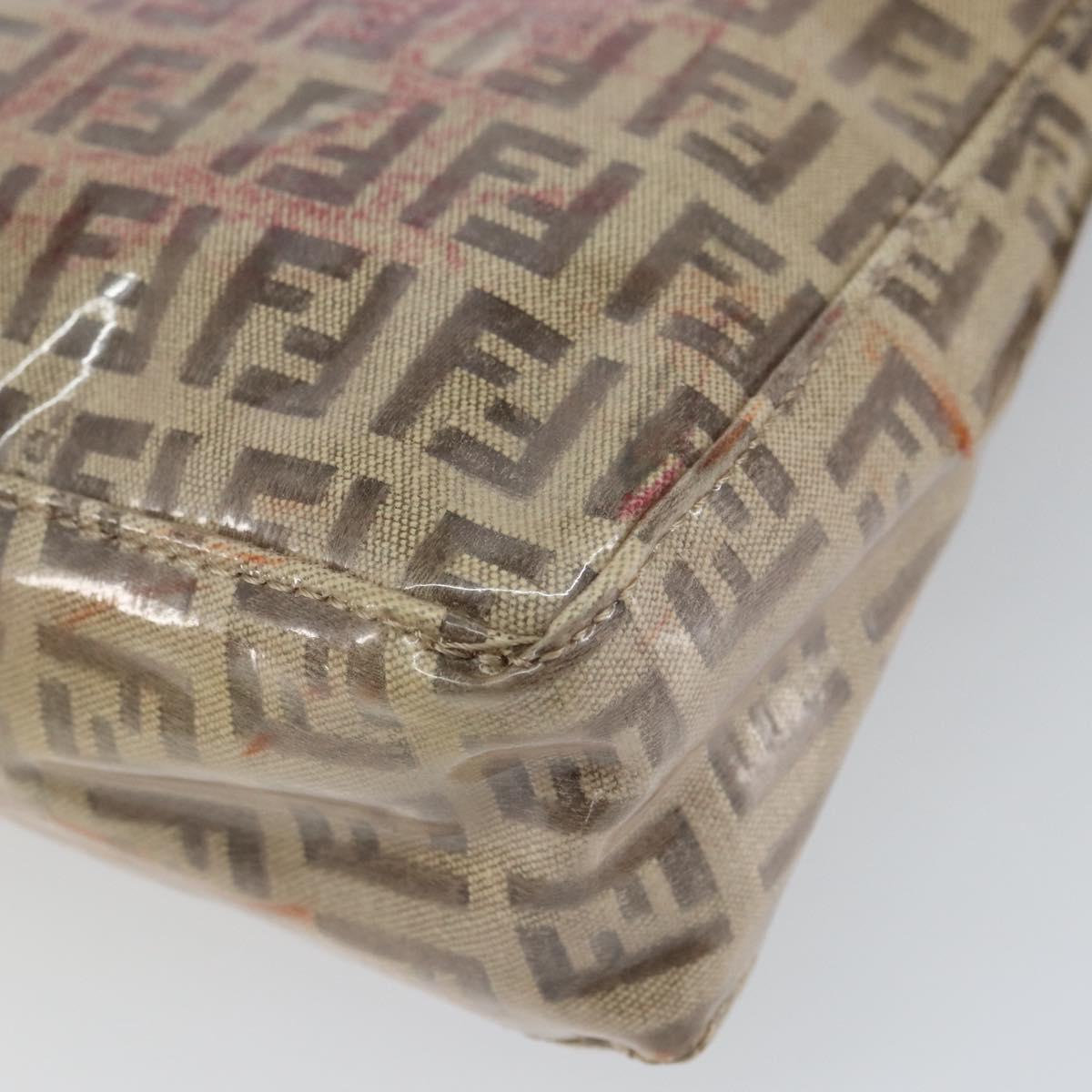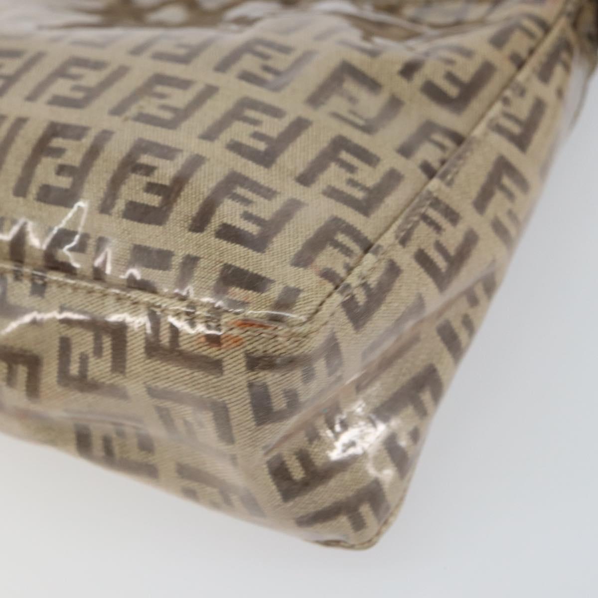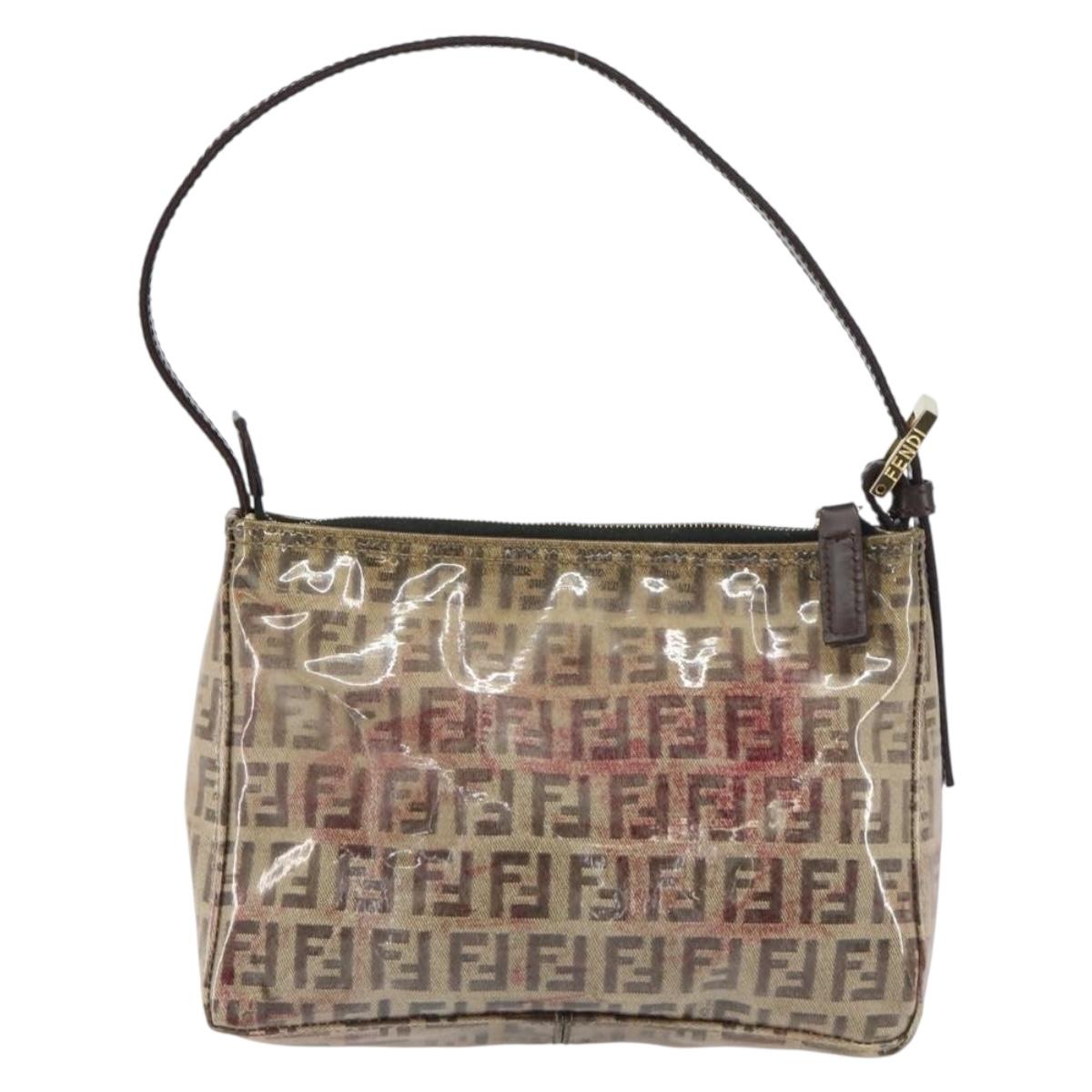 FENDI Zucchino Canvas Pouch Enamel Beige Gold Auth 156480