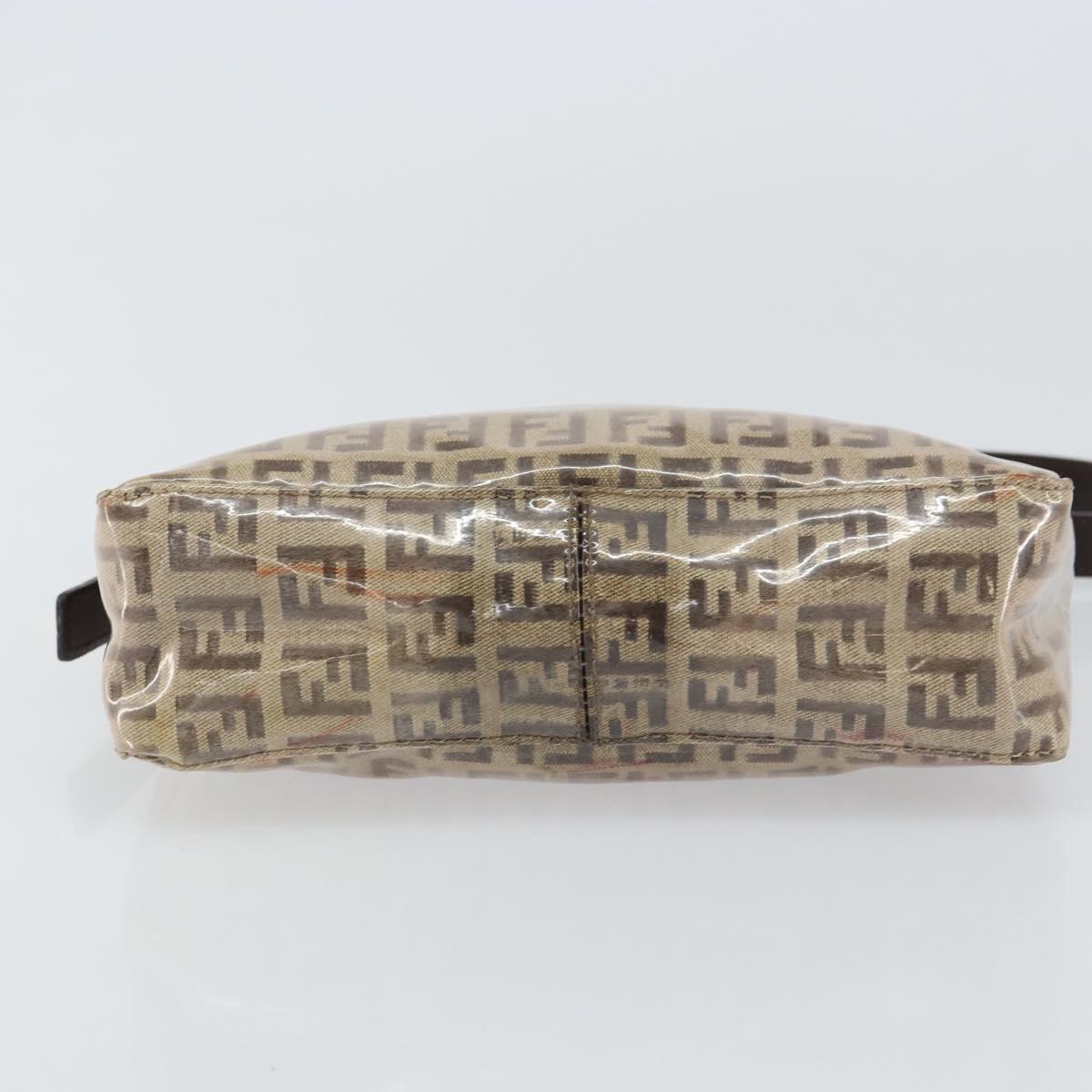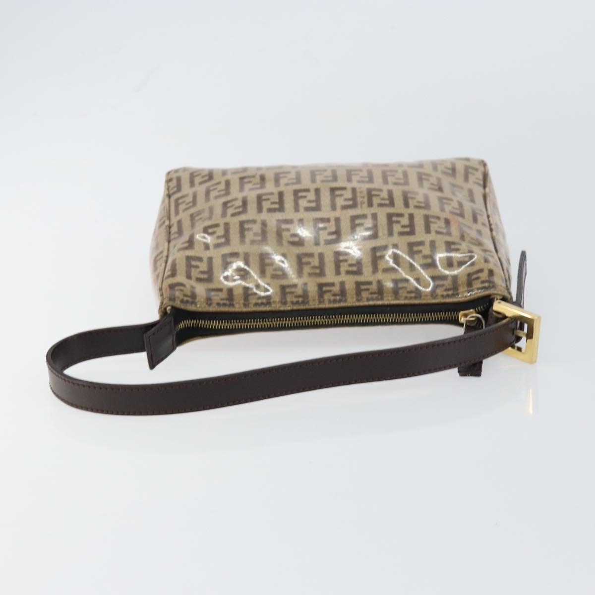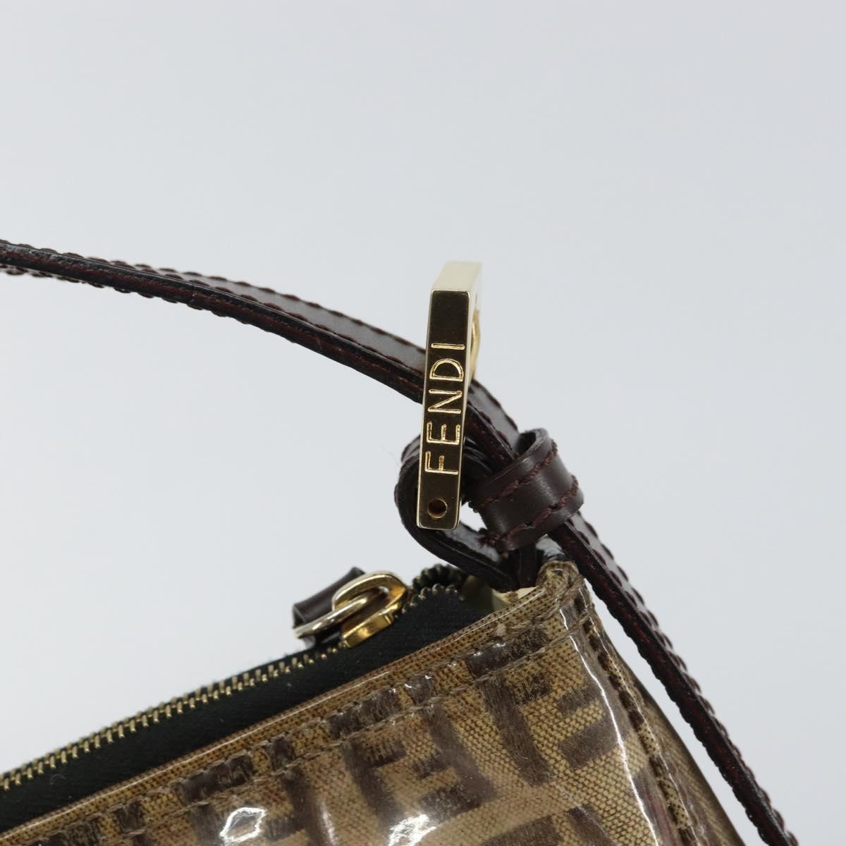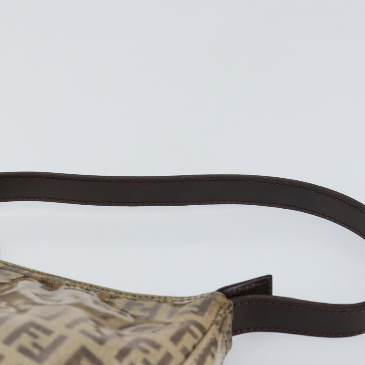 FENDI Zucchino Canvas Pouch Enamel Beige Gold Auth 156480